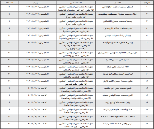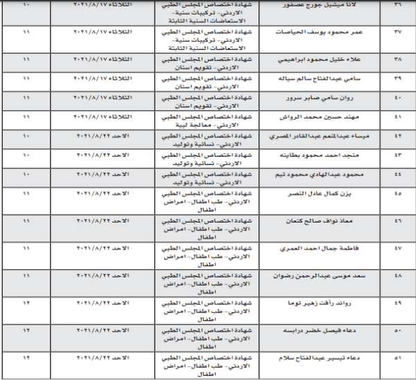 دعت وزارة الصحة، بالتنسيق مع ديوان الخدمة المدنية، المرشحين المدرجة أسماؤهم أدناه، إلى مراجعة مديرية تخطيط الموارد البشرية، في المواعيد المحددة لهم، لإجراء المقابلة الشخصية، لاختيار من سيتعين منهم.