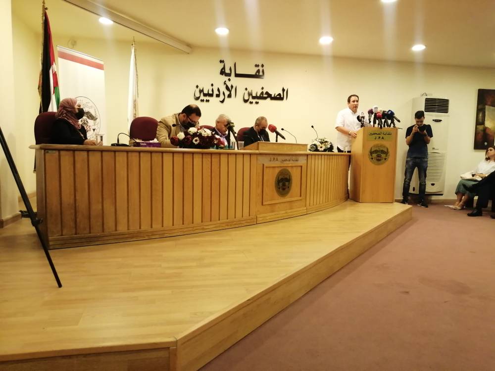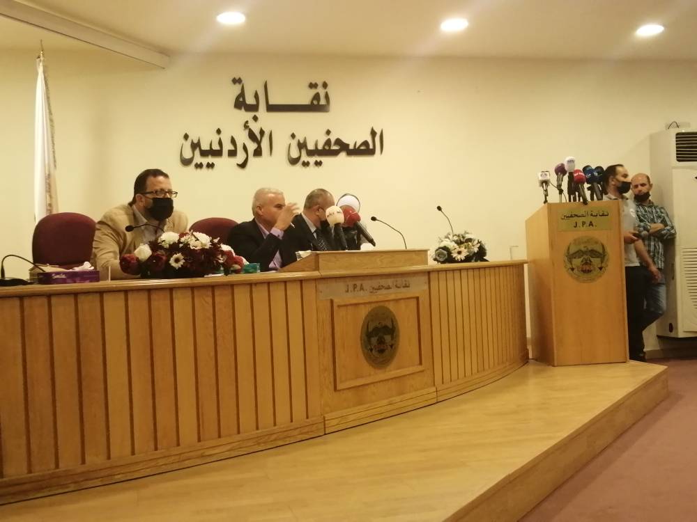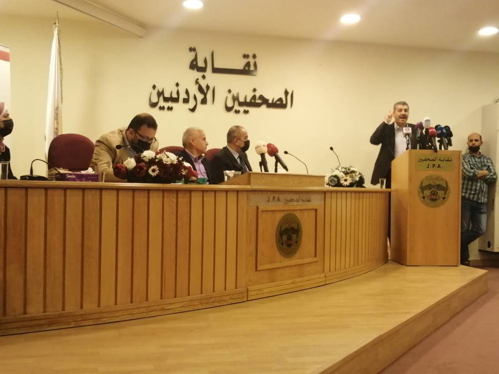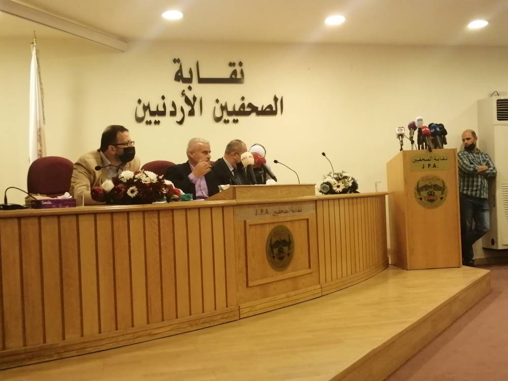 وأكد الزميل أحمد حسن الزعبي أن سحب تعديلات الأنظمة هو شرط للحوار، مشددا على ضرورة عدم اقرار أي قوانين أو أنظمة في المستقبل قبل التشاور مع الأسرة الصحفية.