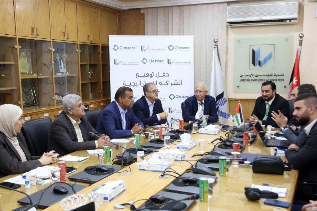 وقّعت نقابة المهندسين الأردنيين وشركة البعد الحر لتقنيّة المعلومات ”كلاسيرا" اتفاقية لتقديم خدمات الاستشارات والتنفيذ والتدريب ودعم التسويق والدعم الفنّي للمنصة الإلكترونية التفاعليّة المتكاملة لأكاديمية المهندسين للتطوير والتدريب الهندسي وذلك بحضور نقيب المهندسين الأردنيين المهندس أحمد سمارة الزعبي والرئيس التنفيذي للشركة المهندس محمّد المدني.