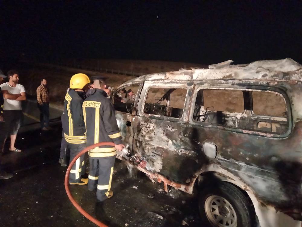 قالت إدارة الإعلام في الدفاع المدني إن فرق الإطفاء في مديرية دفاع مدني تعاملت فجر اليوم الثلاثاء مع حريق شب في مركبة على شارع المية.