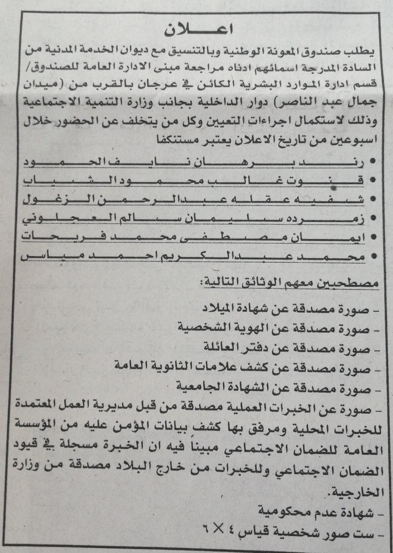 مدعوون للتعيين في صندوق المعونة الوطنية (أسماء)