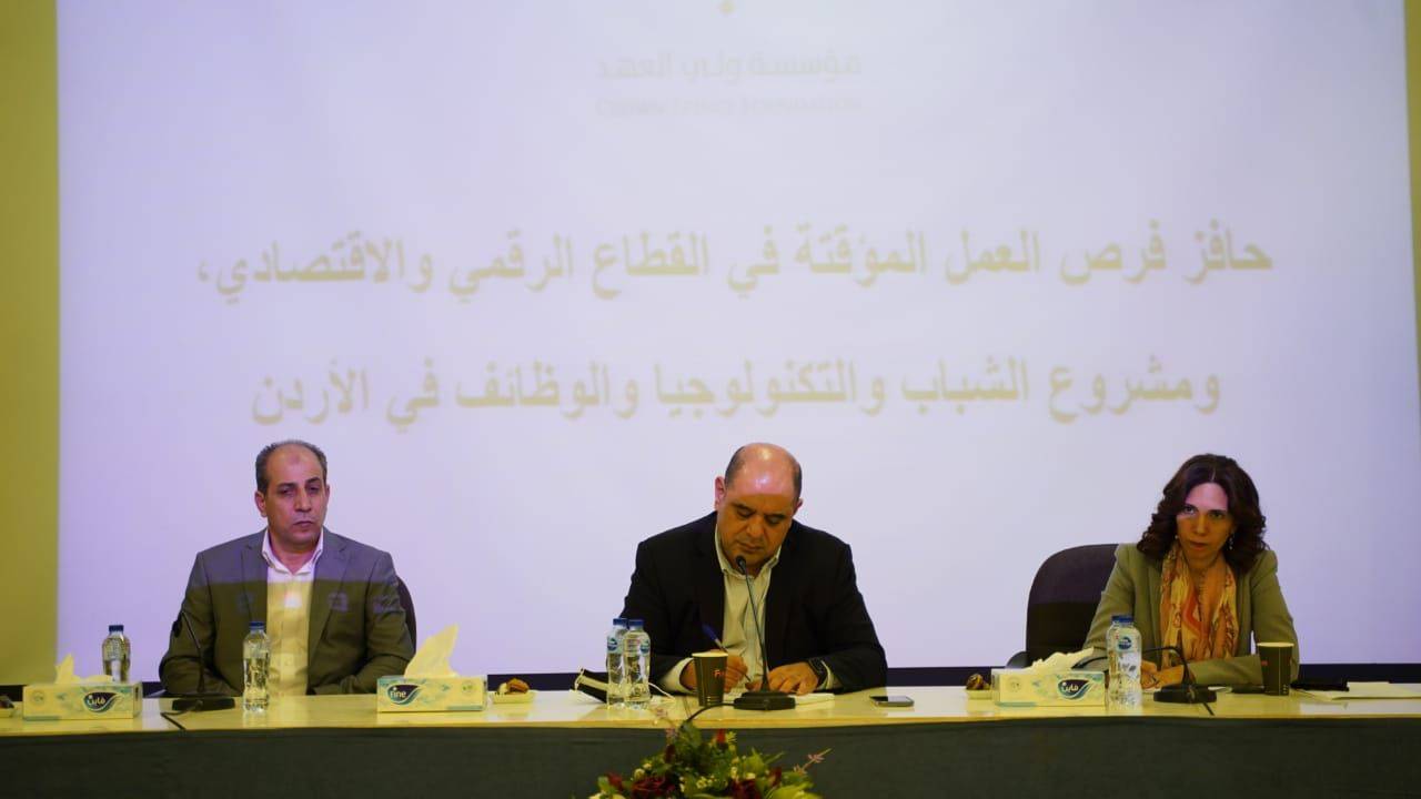 نظّمت مؤسسة ولي العهد اليوم جلسة حواريّة مع الشباب والشابات في محافظة معان حملت عنوان "حافز فرص العمل المؤقتة في القطاع الرقمي والاقتصادي، ومشروع الشباب والتكنولوجيا والوظائف في الأردن"