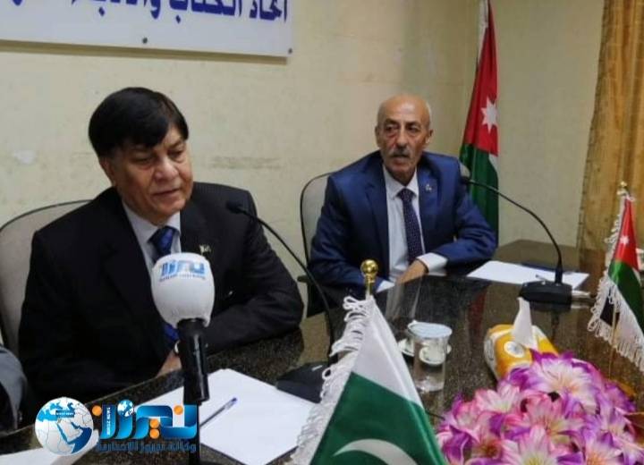 رئيس اتحاد الكتاب والادباء الاردنيين محمود رحال اكد خلال ترحيبه بالسفير الباكستاني على أن يكون هذا اللقاء بداية تعاون ثقافي بناء ومثمر بين الكتاب الأدباء في الاردن وباكستان.