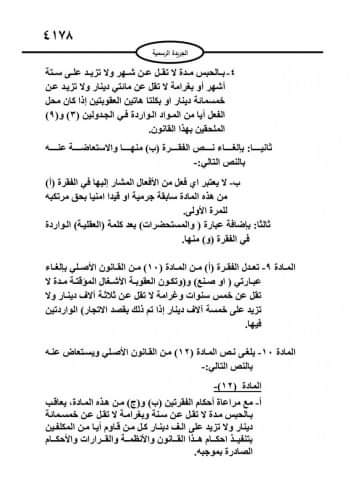 ويبدأ العمل بالقانون بعد ثلاثين يوما من صدوره في الجريدة الرسمية.