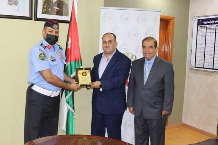 ضمن مبادرة " تراب الوطن غالي يداً بيد مع أجهزتنا الأمنية " والتي أطلقتها جمعية صقور الاردن التعاونية ممثلة برئيسها  أكرم البطوش ومستشار الجمعية  أشرف قطيشات وبحضور  الفريق الركن المتقاعد غازي الطيب رئيس مجلس إدارة نيروز الاخبارية أقيم  حفل تكريم للعقيد الدكتور حسام صايل القاضي مدير إدارة الدوريات الخارجية على الجهود المبذولة من قبل الادارة في العملية المرورية والدور الإنساني والاجتماعي الذي تقوم به مع المواطنين.