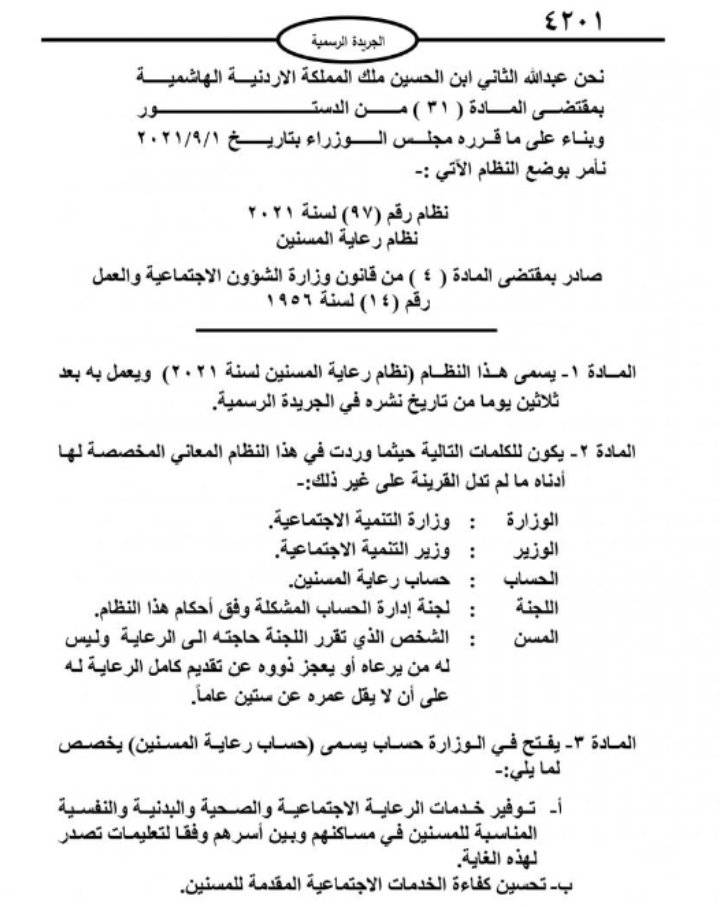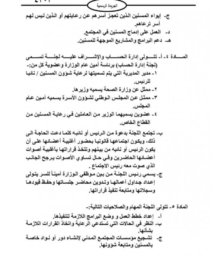 صدر في عدد الجريدة الرسمية اليوم الخميس نظام رعاية المسنين، والذي يدخل حيز التنفيذ بعد 30 يوما.