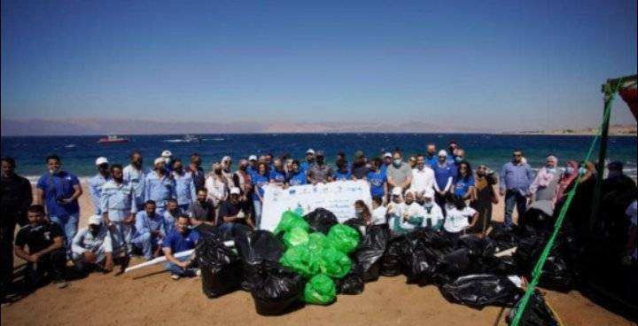 وقالت سفيرة بعثة الإتحاد الأوروبي في الأردن السيدة ماريا هادجيثيودوسيو في كلمتها”كجزء من حملة الاتحاد الاوروبي لتنظيف الشاطئ، تعاونا مع حملة الجمعية الملكية لحماية البيئة البحرية "نظفوا العالم” لتنظيف الشاطئ في العقبة وزيادة الوعي بدور الجميع في حماية الحياة البحرية والتنوع البيولوجي. يمكننا أن نتخذ إجراءات اليوم لضمان الحفاظ على البيئة لنا ولأجيال المستقبل.”
