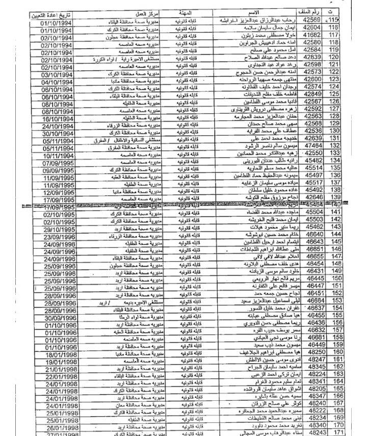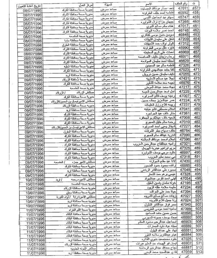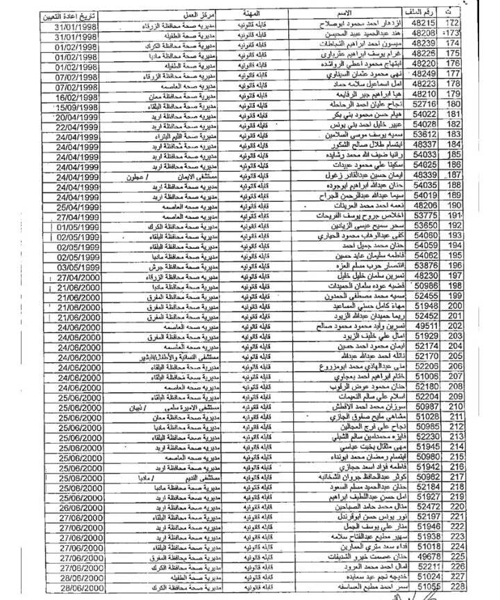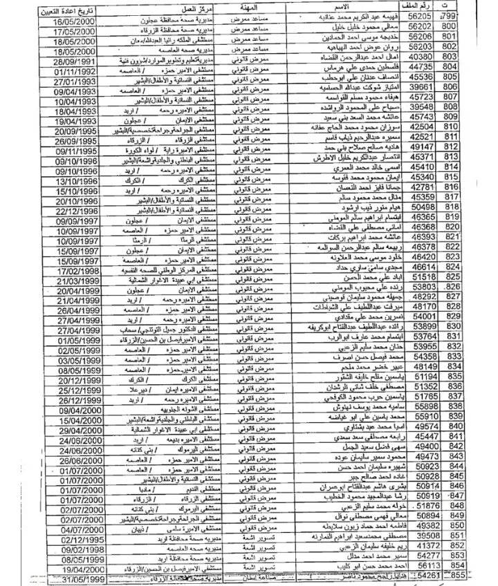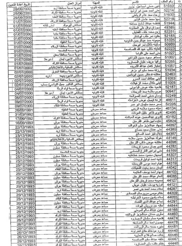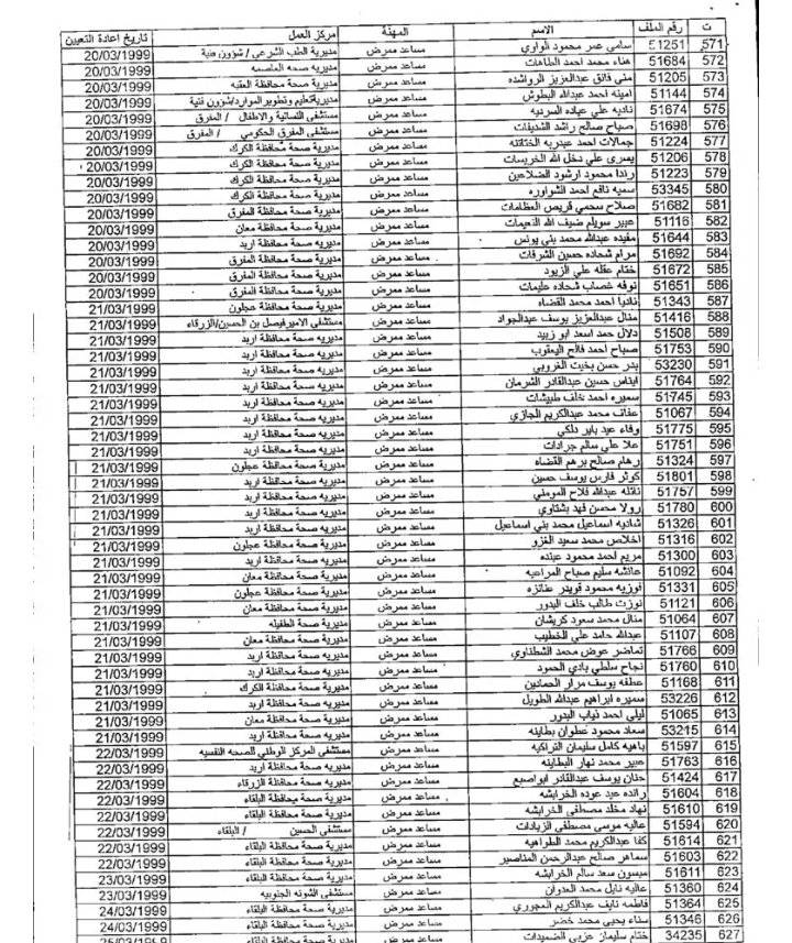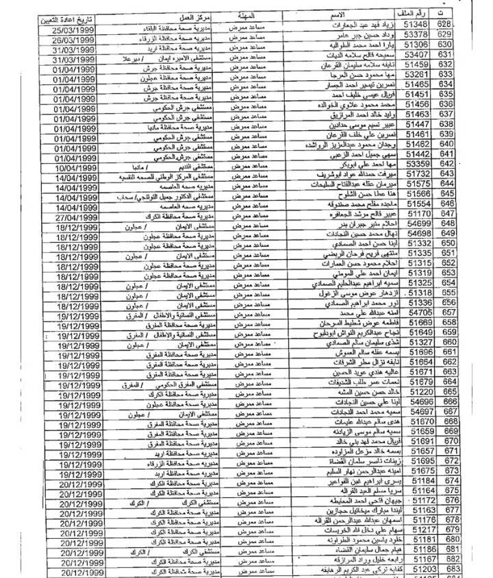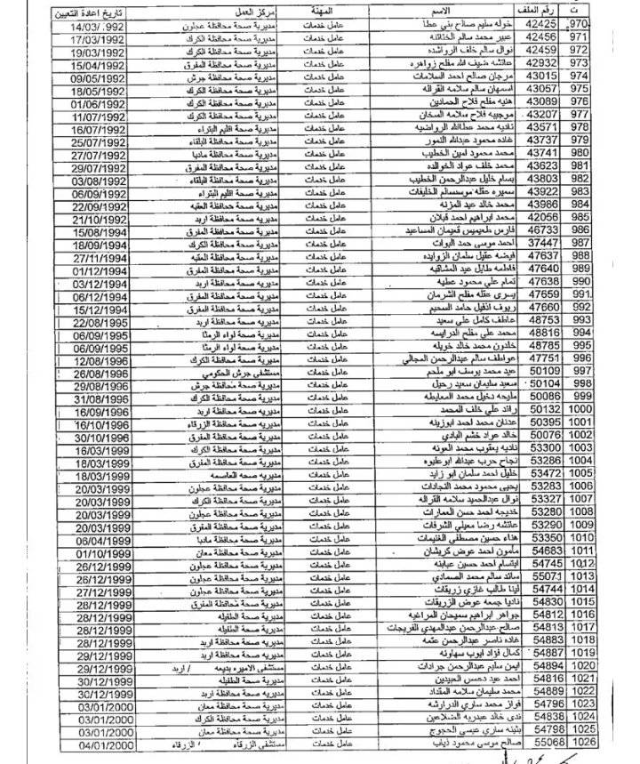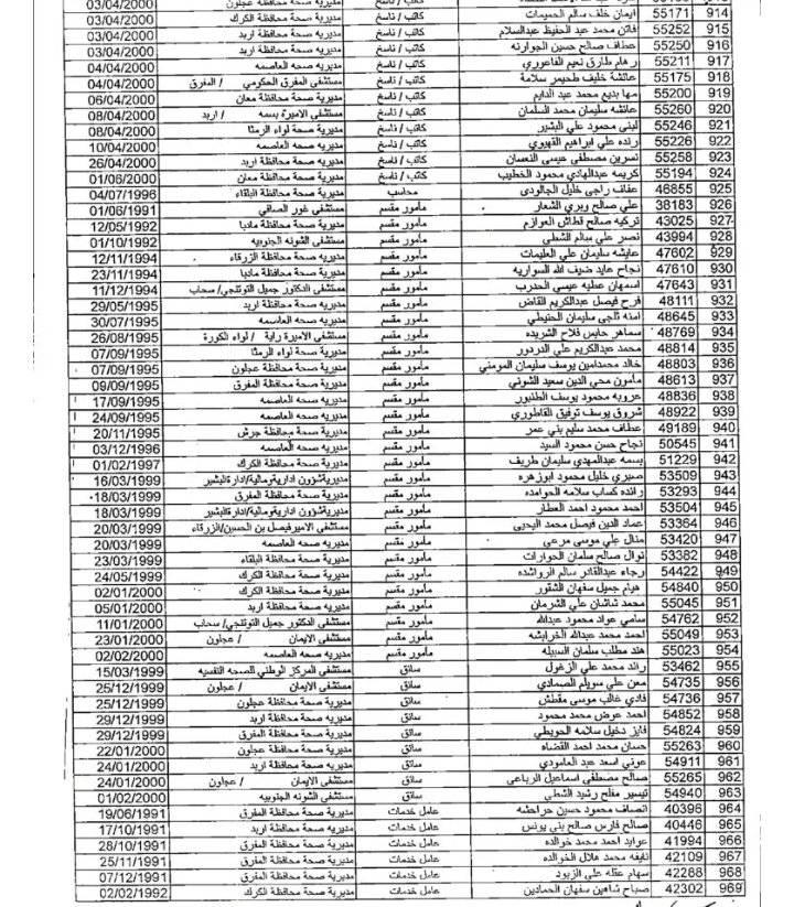 وتاليا أسماء الموظفين: