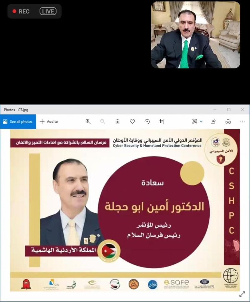 المؤتمر الدولي الأمن السيبراني ووقاية الأوطان على مدى يومين والذي نظمته فرسان السلام برئاسة سعادة الدكتور امين ابوحجلة رئيس فرسان السلام بالشراكة مع اضاءات التميز والإتقان ممثلة بسعادة الدكتور محمد بن عون الله المطيري الأمين العام للمؤتمر وحضور شرفي لسعادة المهندس فتحي جبر عفانة الرئيس التنفيذي لشركة فاست لمقاولات البناء وسعادة الدكتور عبدالله المحياس رئيس جمعية الامارات للانترنت الآمن وسعادة المهندس طلعت الرحالي المقرر العام للمؤتمر