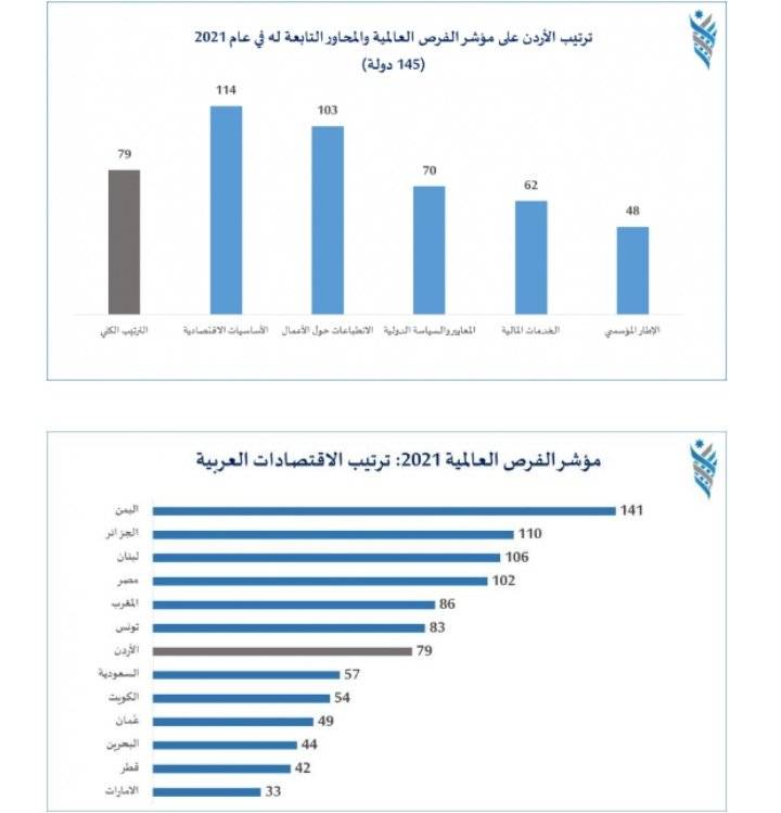 وأوضح المنتدى، أنه على الرغم من أن ترتيب الأردن لم يتغير كثيرًا على محور الانطباعات حول الأعمال، الخدمات المالية، والمعايير والسياسة الدولية، إلا أن ترتيب الأردن على محور الانطباعات حول الأعمال يشير إلى ضرورة ترجمة القوانين بشكل عادل وفعال والتواصل الدائم مع المستثمرين بما يضمن إزالة اللبس والاجتهادات من القائمين على القوانين والأنظمة التي من شأنها تعزيز الانطباعات السلبية. أما من الجانب المشرق، تحسن ترتيب الأردن بشكل كبير على محور الإطار المؤسسي.