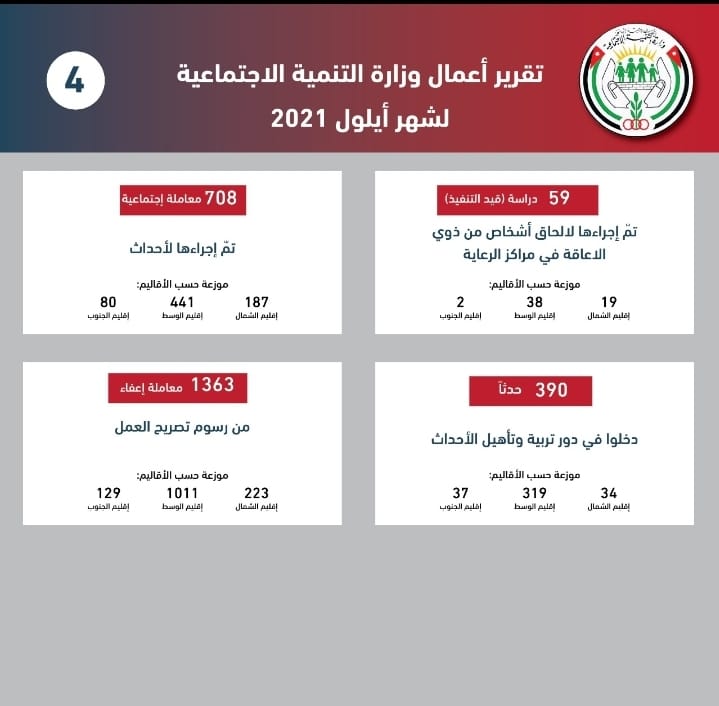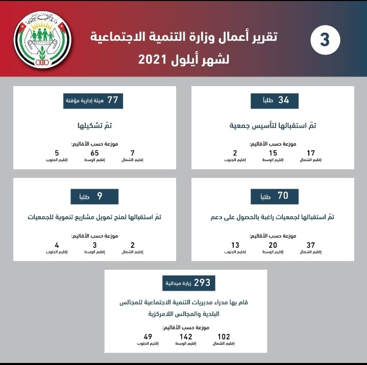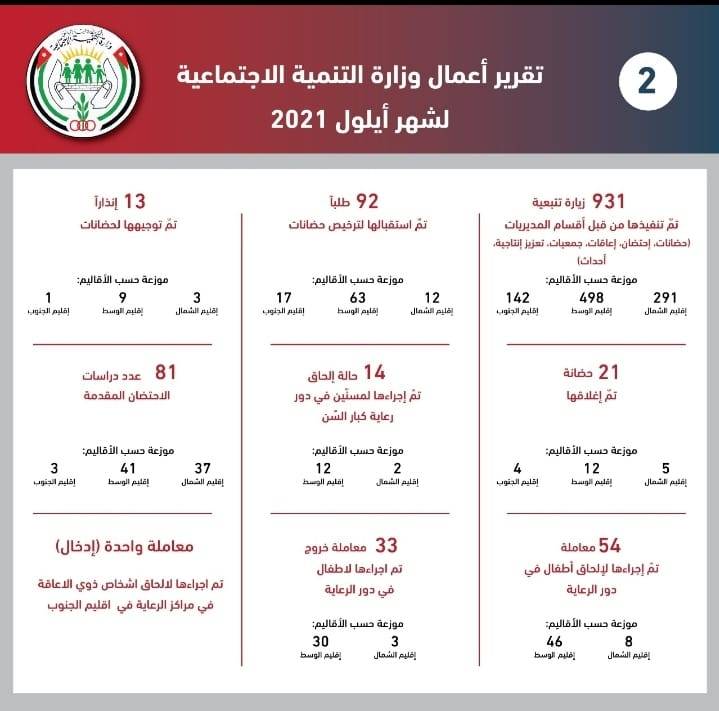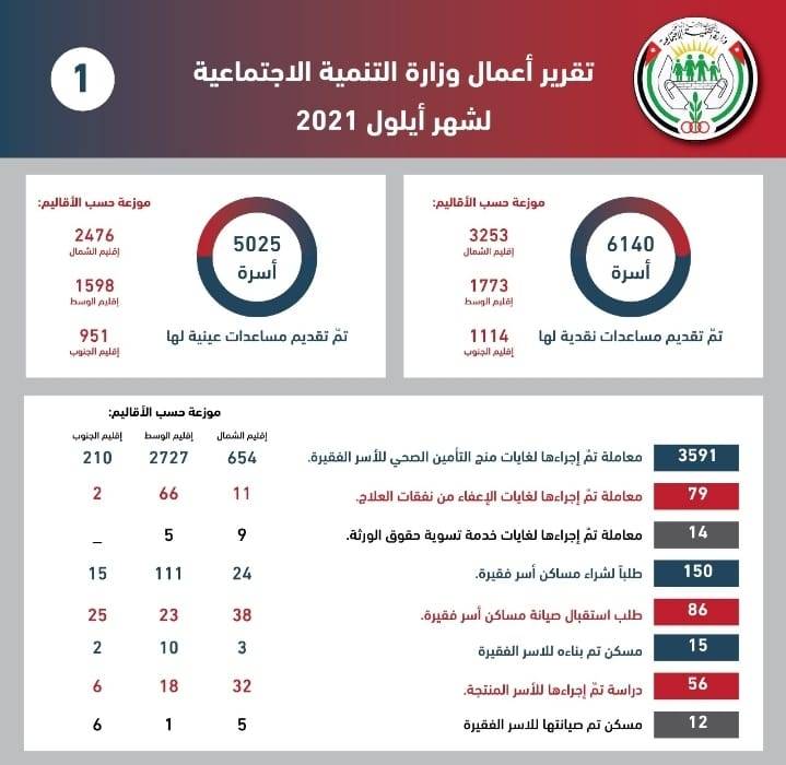 التنمية الاجتماعية تصدر تقرير أعمالها لشهر أيلول الماضي