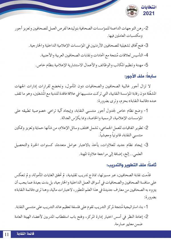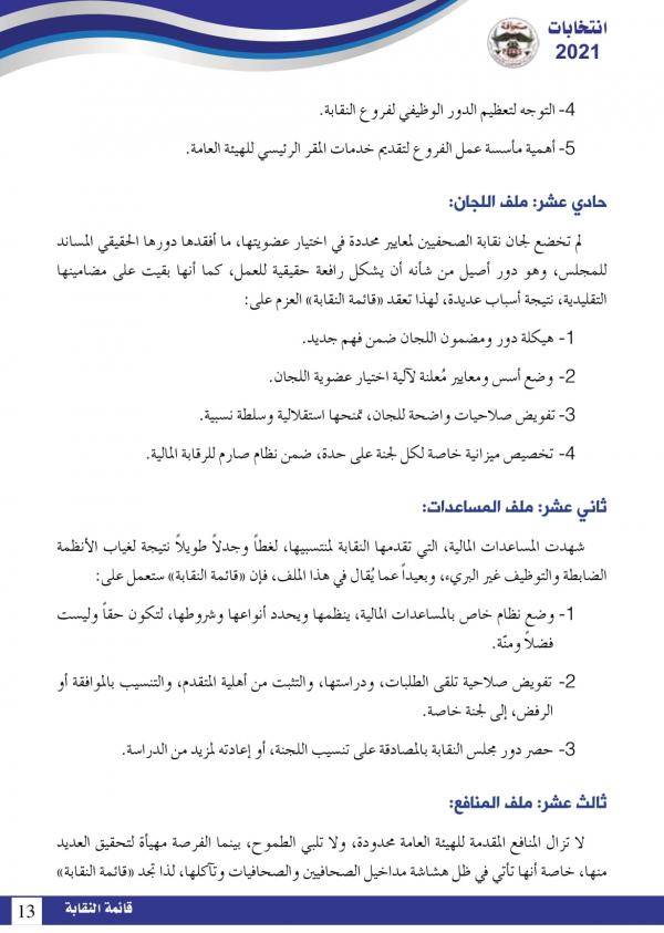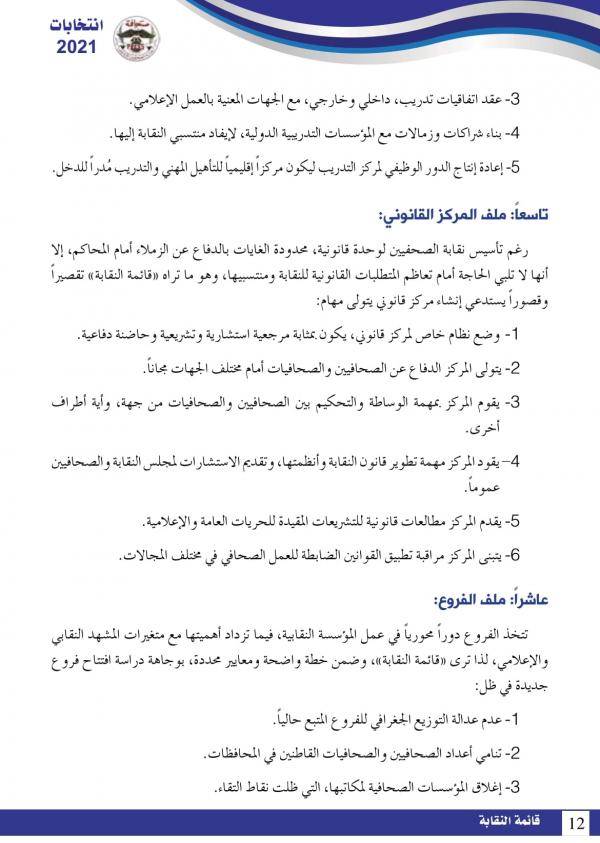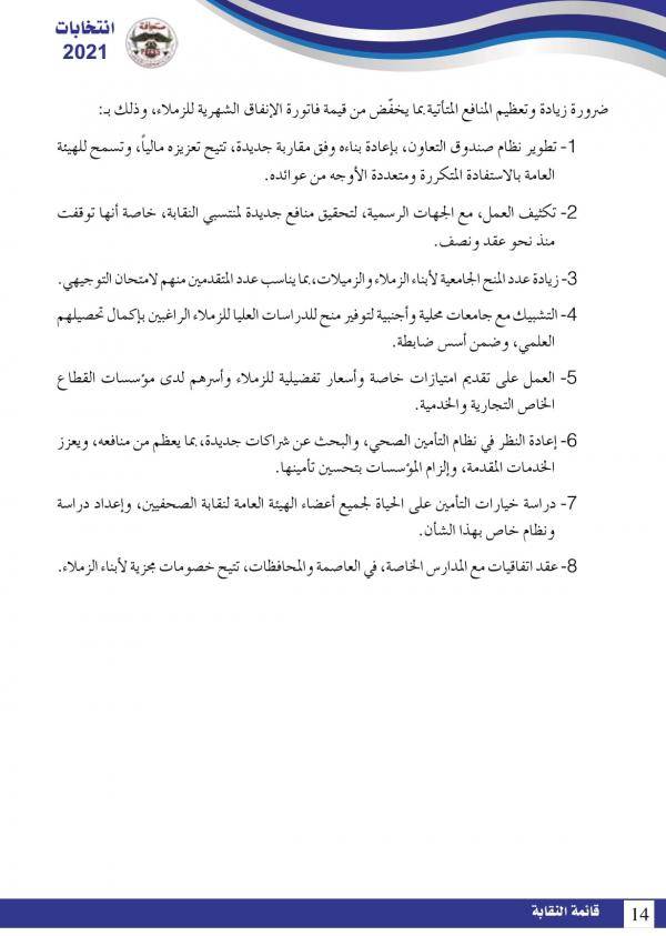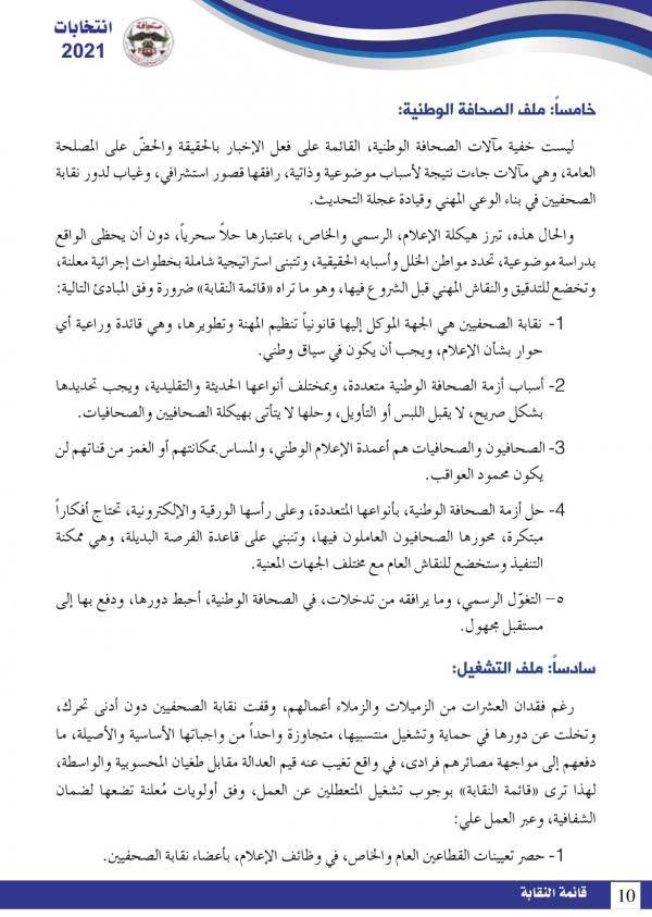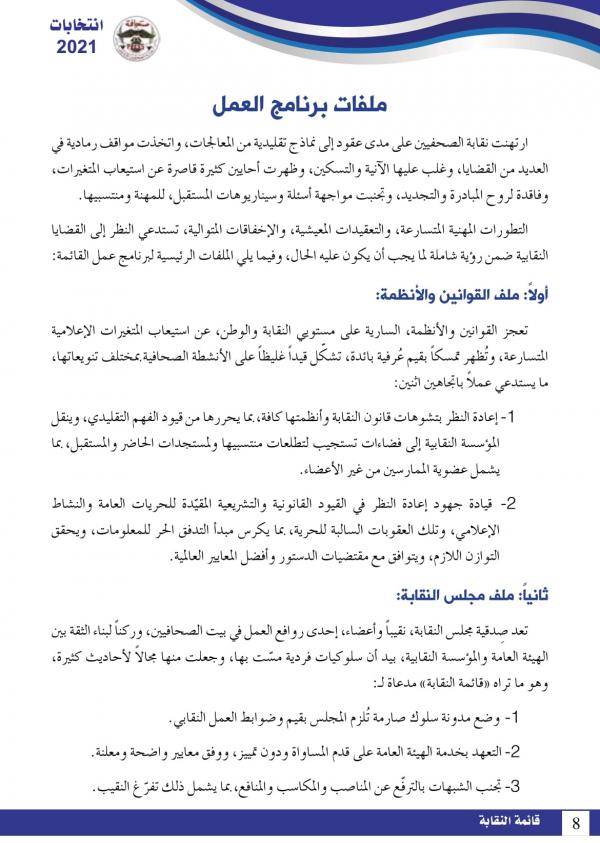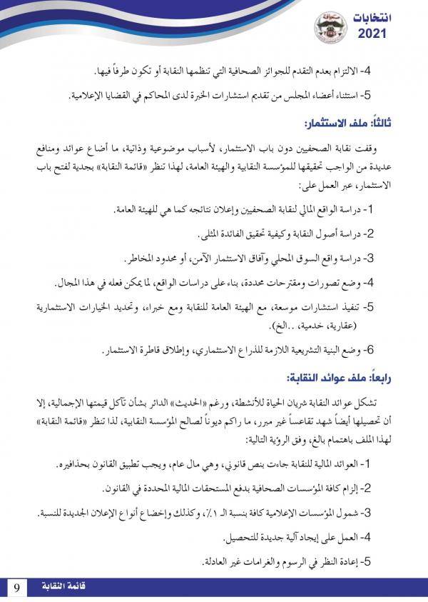 وأعربت القائمة عن طموحها إلى تقديم ما يلبي تطلعات الصحافيين والصحافيات، وبما يجيب عن أسئلة الحاضر والمستقبل النقابي والمهني والمعيشي.