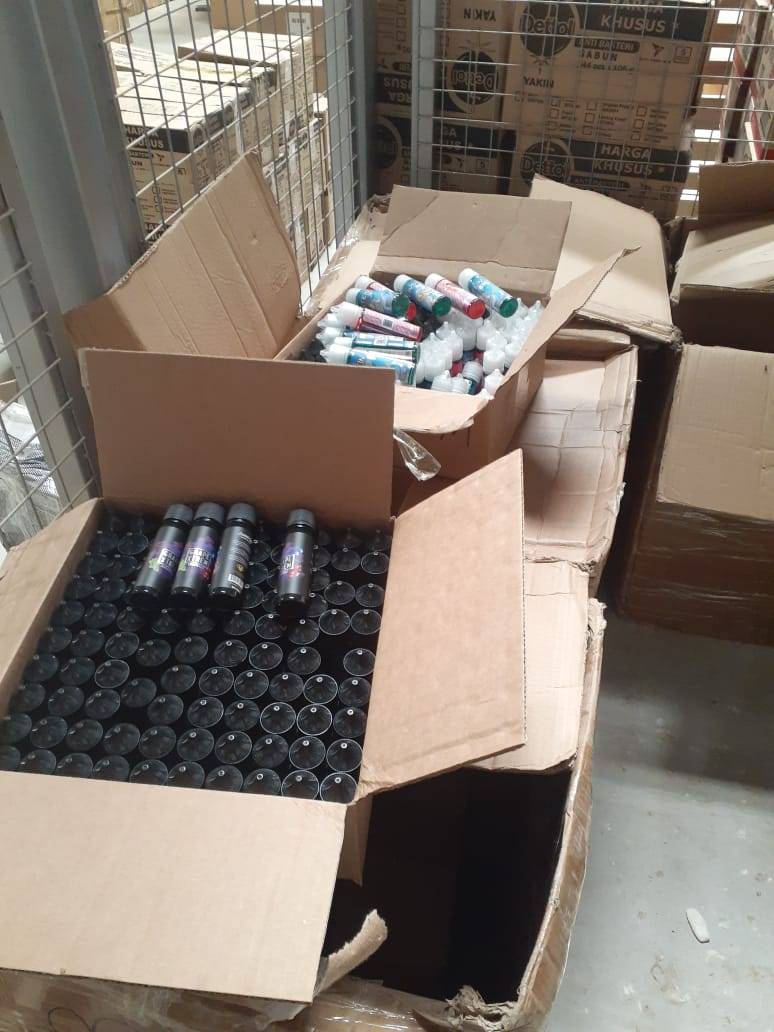 قال الناطق الاعلامي لدائرة الجمارك ان العاملين في مركز جمرك المنطقة الحرة المطار/ المشتى تمكنوا من احباط تهريب كميات كبيرة من نكهات سجائر الكترونية تقدر بعدد ٨٥٣٣ عبوة وتحمل منشأ امريكي تم ضبها اثناء تفتيش ارسالية واردة الى المركز تم التصريح عن محتوياتها (مواد تجميل).