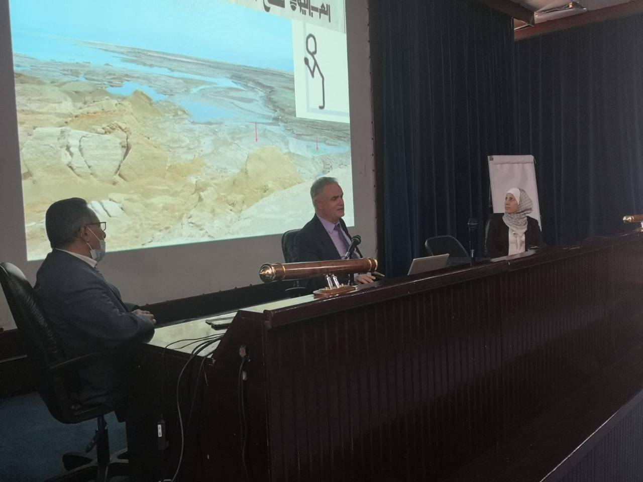 عقدت وزارة المياه والري / سلطة وادي الاردن بحضور وزير المياه والري المهندس محمد النجار محاضرة توعوية للاستاذ الدكتور نجيب ابو كركي  حول ظاهرة الحفر الانهدامية في منطقة الاغوار الجنوبية -البحر الميت – بحضور امين عام وزارة المياه والري الدكتور جهاد المحاميد وامين عام سلطة وادي الاردن بالوكالة المهندسة منار محاسنة .