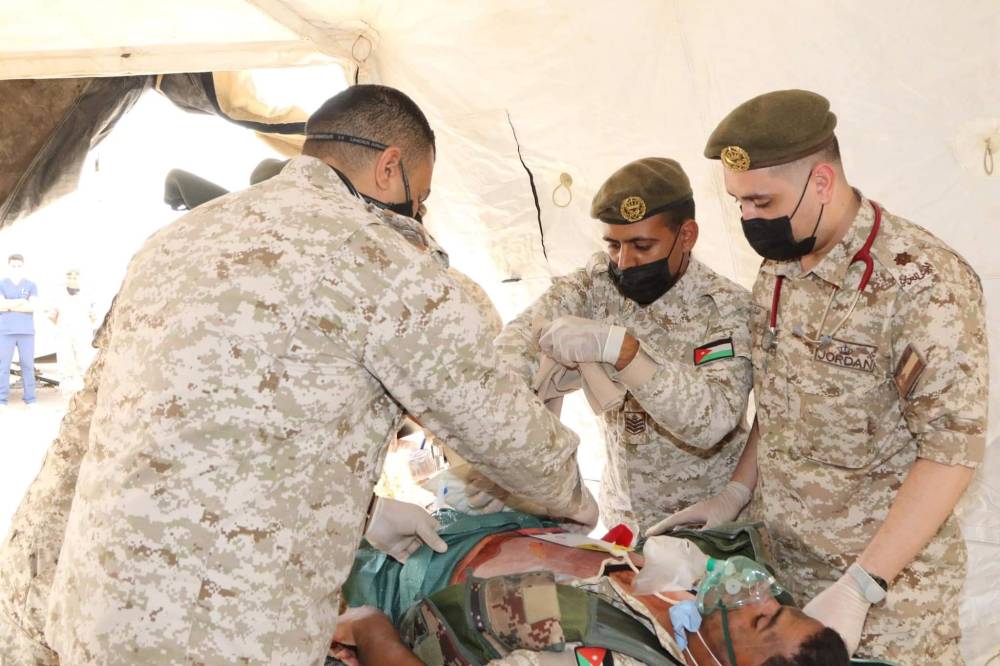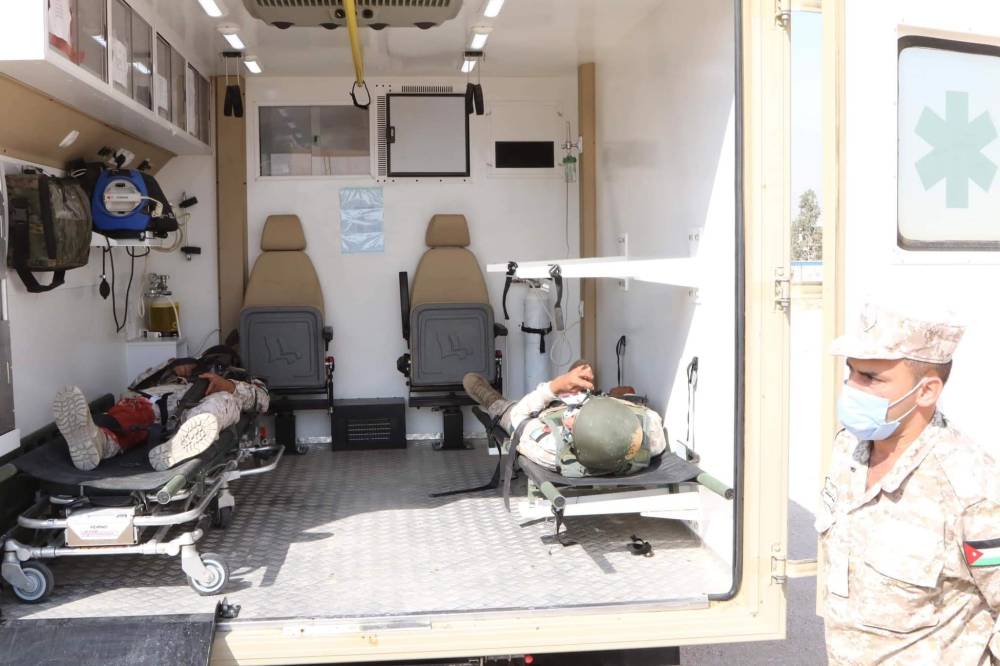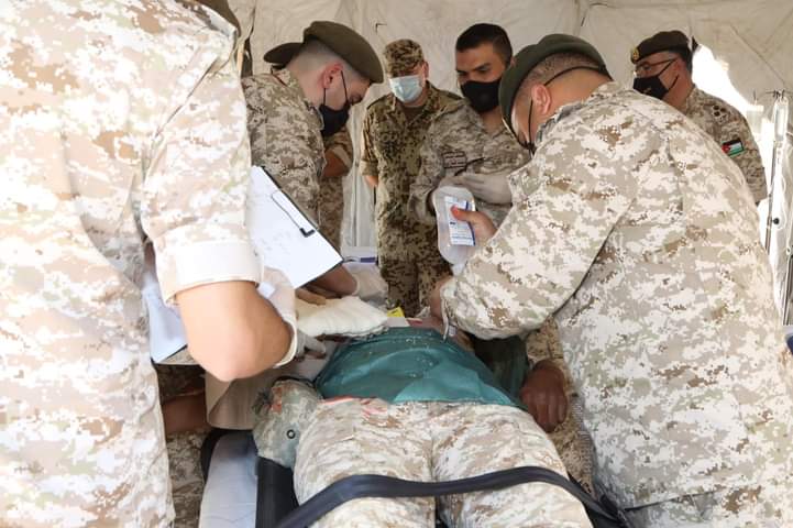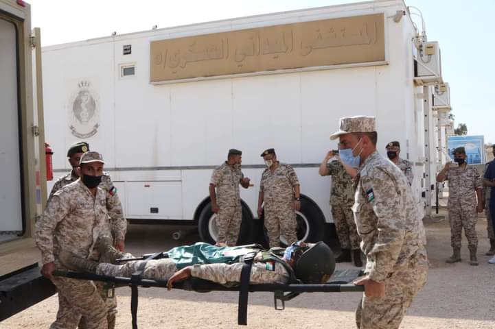 نفذت شعبة طب الميدان التابعة لمديرية الخدمات الطبية الملكية تمرين "اخلاء طبي ميداني" بحضور قائد طب الميدان العميد الطبيب حسين الضمور وقائد المستشفى الميداني /خو ووفد طبي الماني من الخدمات الطبية الالمانية.
