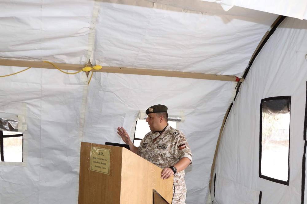 واستمع الوفد لايجاز حول طب الميدان قدمه قائد الطب الميدان العميد الطبيب حسين الضمور، والعمل الذي تقوم به الشعبة ودورها على مستوى الجيش والوطن، وأضاف أن مديرية الخدمات الطبية الملكية كان لها عبر السنين الماضية وما زالت التجارب الحية والتعامل الحقيقي والواقعي مع مثل هذه الأحداث وآخرها ما تم خلال خلال جائحة كورونا.