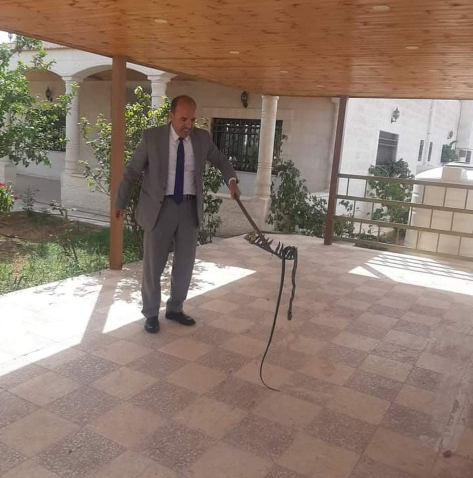 تداول نشطاء مواقع التواصل الاجتماعي بفيسبوك صورًا يظهر من خلالها مواطنًا اردنيًا يقتل حنيشًا داخل سور منزل جاره بمحافظة اربد .