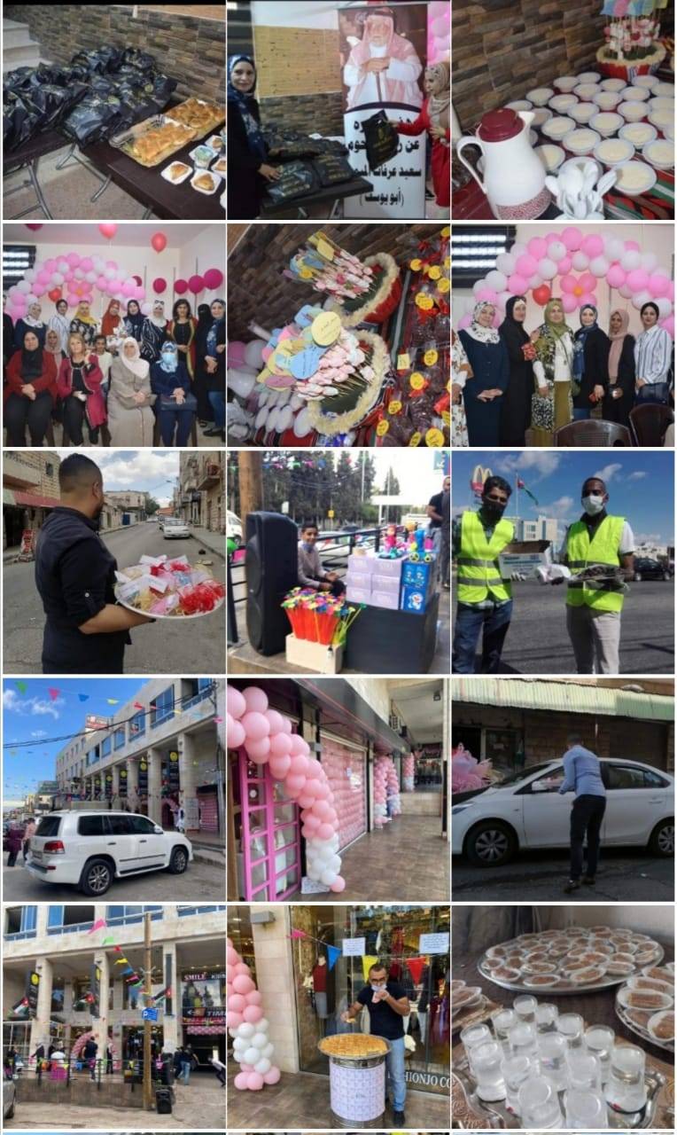وقامت كذلك العديد من المحلات التجارية بتقديم الحلوى للزبائن والقهوة ومياه الشرب ومنهم من عمل على تخفيض بعض السلع  الرئيسية احتفالا بهذه المناسبة . العديد من الافراد تجولوا في الشوارع العامة الرئيسية والفرعية يحملون الماء والتمر والقهوة والعديد من الهدايا و قاموا بتوزيعها على المشاة وسائقي المركبات . رجال الاعمال واصحاب الايادي البيضاء قدموا المساعدات المالية والعينية  للاسر العفيفة , الاسر الاربدية اولمت لبعضها البعض الاكلات الشعبية وقاموا بتوزيع جزء منها على المنازل المحيطة بهم من الاقارب والاصدقاء , المساجد اكتظت بالمصلين في مختلف الصلوات  والكثير من الطقوس التي تعبر عن فرحة المسلمين بهذه المناسبة الهامة جدا والاستثانية .