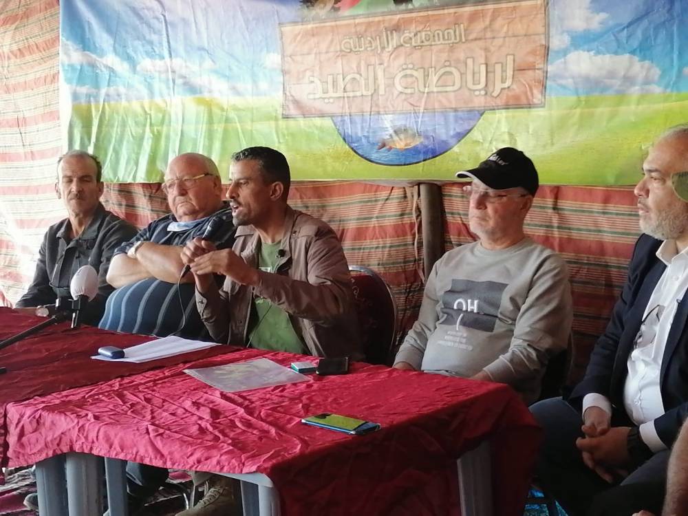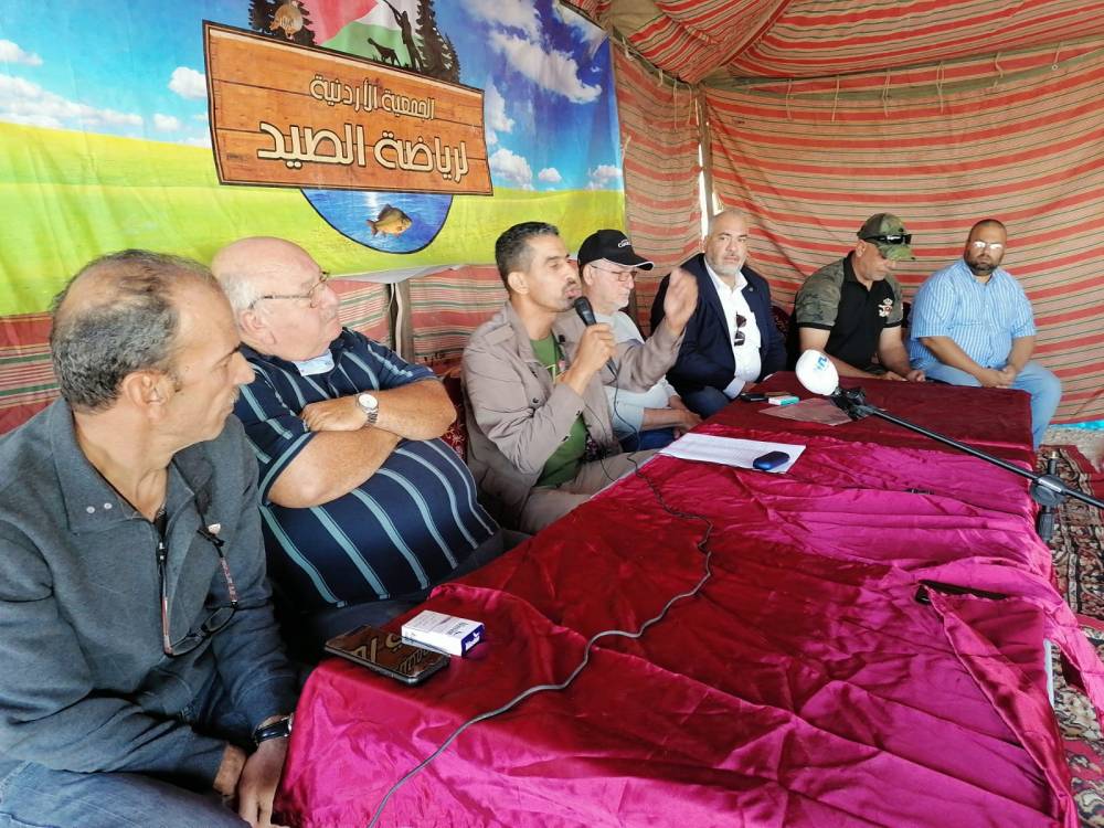 رئيس الجمعية الاردنيه لرياضة الصيد أحمد نزال اكد خلال الاجتماع أن هذه الجمعية تضم 1250 صياد من اصل 5000 صياد مرخص في الاردن وهذا يؤهل الجمعية للتحدث باسم الصيادين في الأردن وهذا الاجتماع يأتي لمناقشة مطلبنا من وزراة الزراعة والتي تركز على إعادة هيكلة لجنة الأحياء البرية التابعة لوزارة الزراعة وخاصة أن اعضائها ليس لهم علاقة بعالم الصيد ومواسمه لذلك قراراتهم لا تستند إلى الواقع الذي نعلمه جيدا بالنسبة للصيد ومواسمه ومناطقه وطلبنا من الجمعية الملكية لحماية الطبيعة إعادة تشكيلها دون جدوى لذلك نلجأ لوزير الزراعة لتصويب أوضاع هذا القطاع بالنسبة للجنة وكذلك فتح الصيد شرق السكة المتوقف منذ 1975.