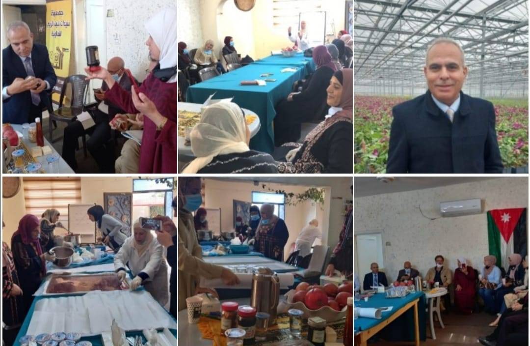 وأشار إلى أن الورشة التدريبية حول تصنيع خبيصة الرمان هي مشروع الإستثمار في المجتمعات الصغيرة وانتشال الأسر الريفية من الفقر , حيث نفذت الورشة بإدارة المهندسة جيهان نصيرة من مركز بحوث الرمثا و المجموعة الديناميكية نفذها المهندس قتيبة بعنوان توصيل النقاط التسعة حيث ان الهدف من اللعبة تعليم المشاركات التفكير خارج إطار الصندوق , وبمشاركة المهندسة سماح جرادات رئيس شعبة إرشاد بني كنانة , كما وقدمت المهندسة أماني السعدي من مؤسسة الغداء والدواء موضوعا خاصا حول شروط وإجراءات الترخيص لممارسة مهنة الصناعات المنزلية والاشتراطات الصحية الواجب توفرها في أماكن إعداد الغذاء في المنزل والبناء والمعدات والعاملين فيها , بالإضافة إلى الأساليب الصحية والنظافة العامة والشخصية والتسممات الغذائية والوقاية منها .
