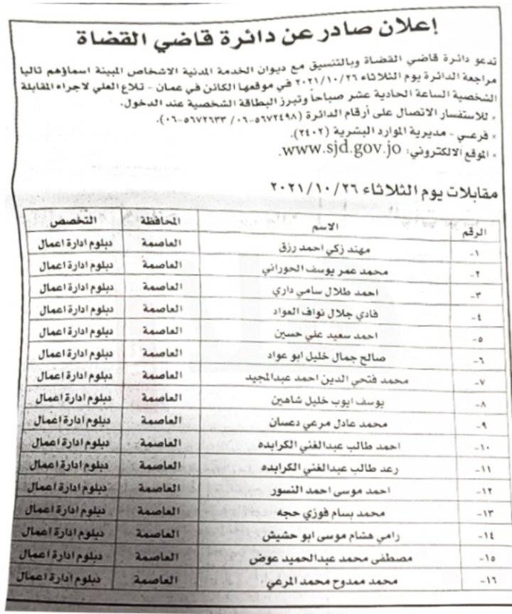 مدعوون للمقابلات في دائرة قاضي القضاة_ اسماء