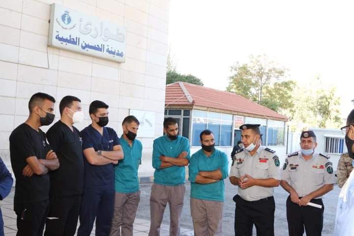 نفذ مركز مركز طوارئ الحسين بالتعاون مع مديرية الدفاع المدني غرب عمان تمريناً لحادث وهمي مفترض داخل المركز.