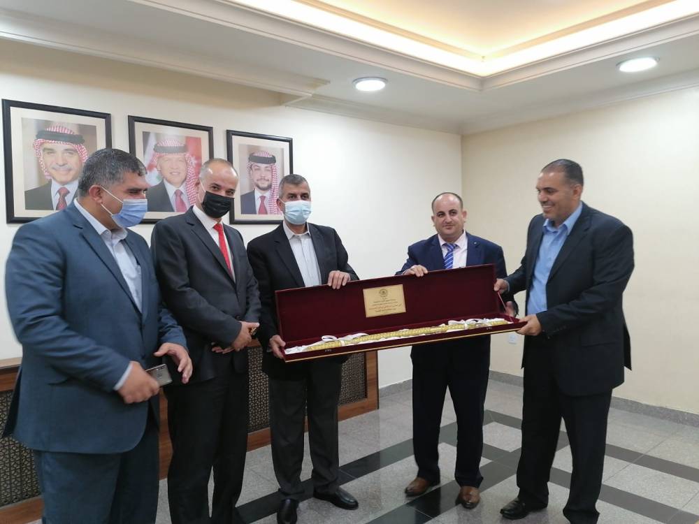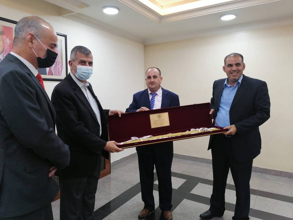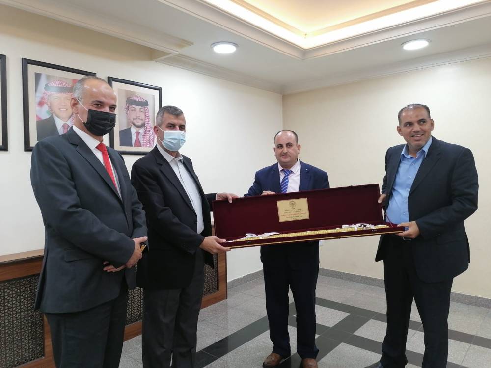 بهدية تذكارية مقدمة من جمعية صقور الأردن التعاونية متعددة الأغراض.