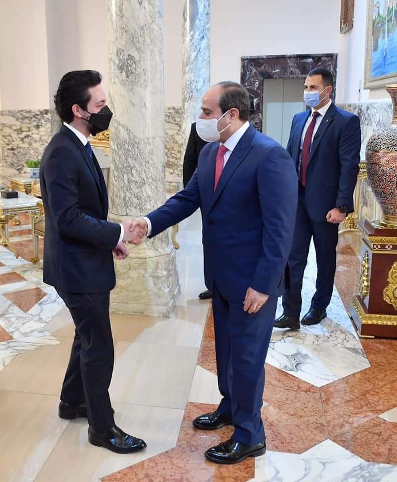 وحضر اللقاء رئيس الوزراء الدكتور بشر الخصاونة، ووزير السياحة والآثار نايف الفايز، ووزير الصناعة والتجارة والتموين يوسف الشمالي، والسفير الأردني في مصر أمجد العضايلة، ومدير مكتب سمو ولي العهد، مصطفى خليفة، وعدد من كبار المسؤولين المصريين.