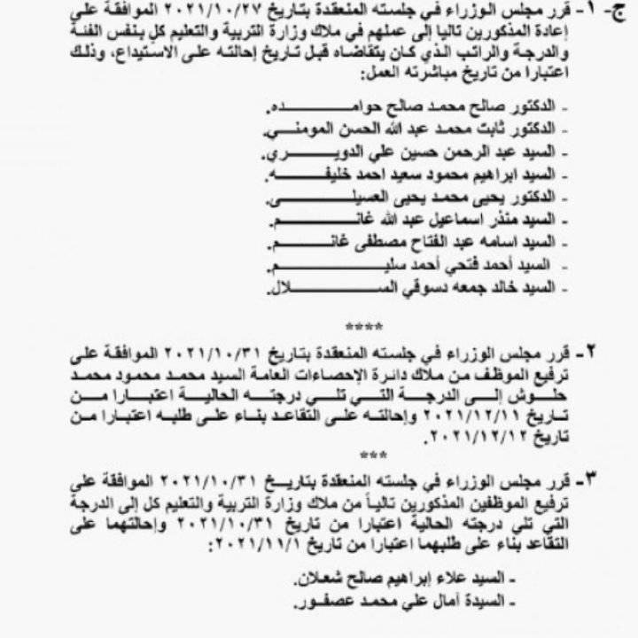 صدر في عدد الجريدة الرسمية اليوم الثلاثاء قرارات مجلس الوزراء بإحالة موظفين حكوميين الى التقاعد وانهاء خدمات اخرين.