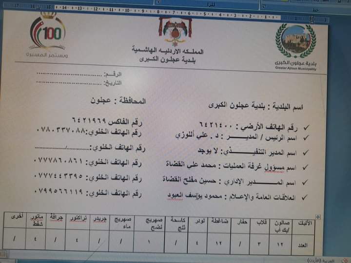تدعو بلدية عجلون الكبرى المواطنين أخذ  الحيطة والحذر خلال  المنخفض الجوي والأحوال الجوية السائدة والابتعاد عن مجاري الأودية  والسيول حفاظاً على سلامتهم  وعدم التردد بالإبلاغ عن أية حالة طارئة من خلال  الاتصال على أرقام غرفة العمليات الرئيسية :