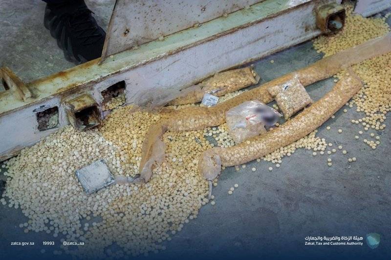 وأوضحت الهيئة، أنه عند خضوع عددٍ من الإرساليات للإجراءات الجمركية والكشف عليها عبر التقنيات الأمنية والوسائل الحية "الكلاب البوليسية" عُثر على تلك الكميات من حبوب الكبتاجون مخبأة بطرق فنية مختلفة، لكنها اصطدمت بكفاءة منسوبي الهيئة في المنفذ وخبرتهم في التعامل مع مثل هذه الحالات، حيث أوضحت أنه في المحاولة الأولى التي تم إحباطها عُثر على (467441) حبة كبتاجون مخبأة في تجويف أسفل أرضية إحدى الشاحنات القادمة عبر المنفذ.