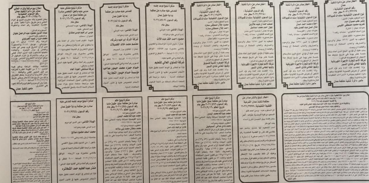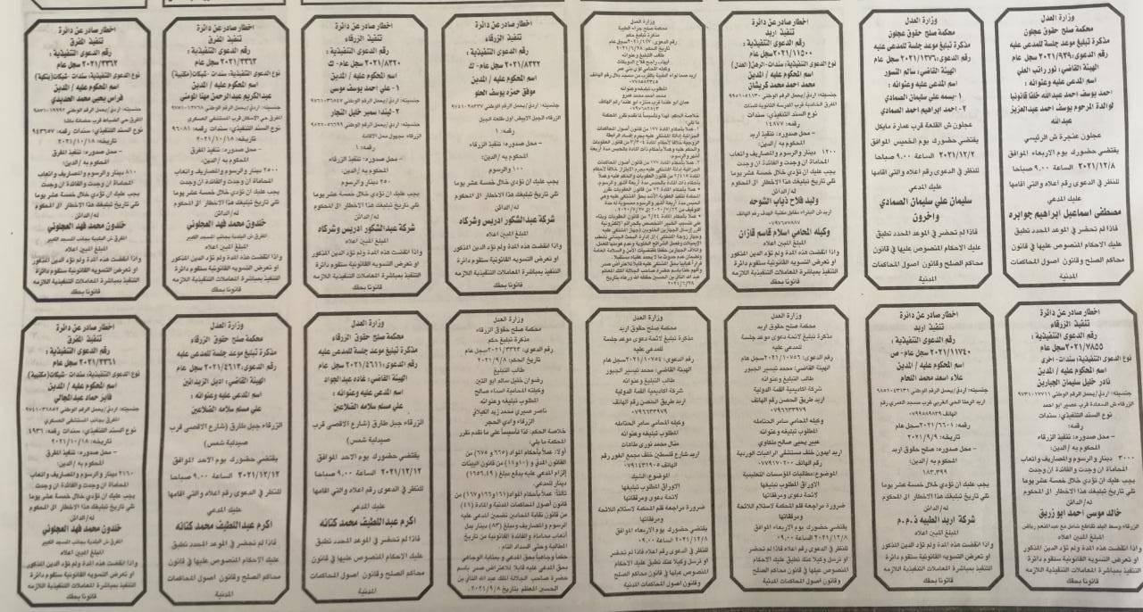 أعلنت محاكم اليوم الإثنين عن مذكرات تبليغ مواعيد جلسات المحاكمة للمشتكى عليهم المذكورين في الجدول ادناه.