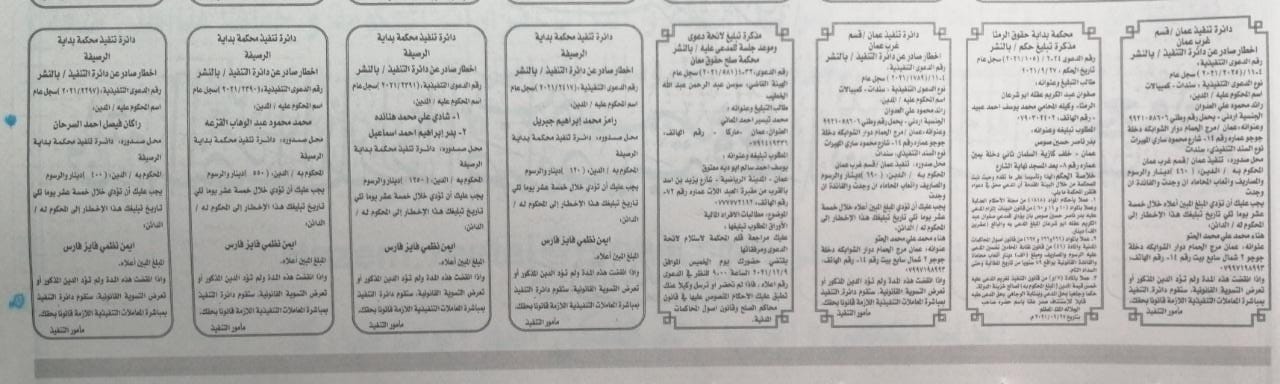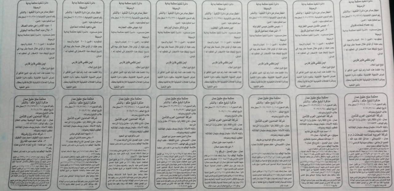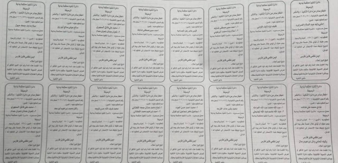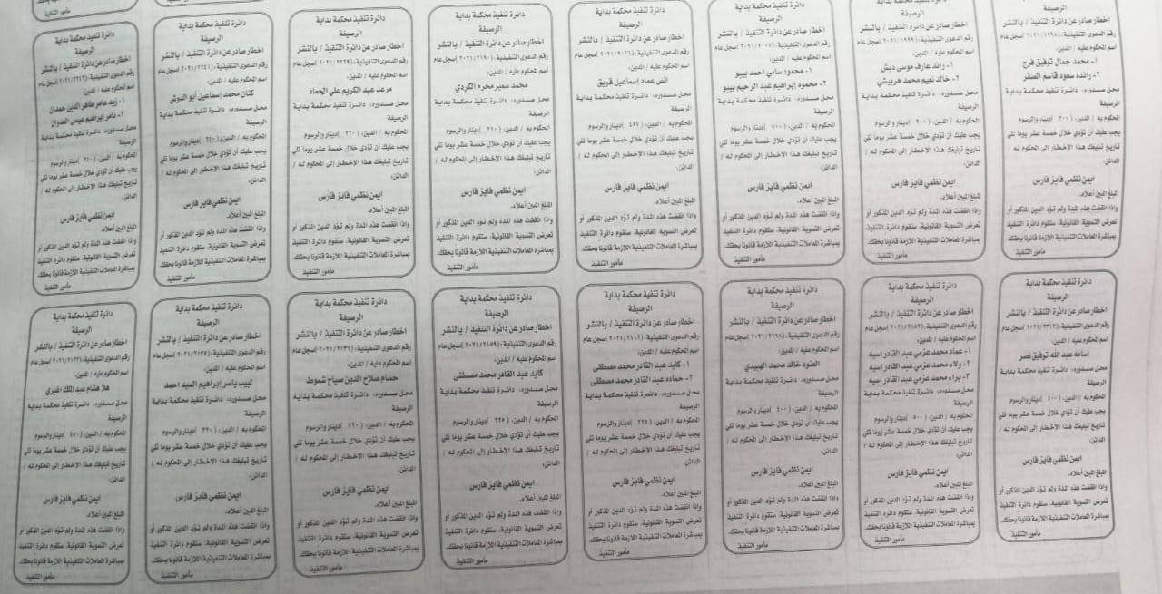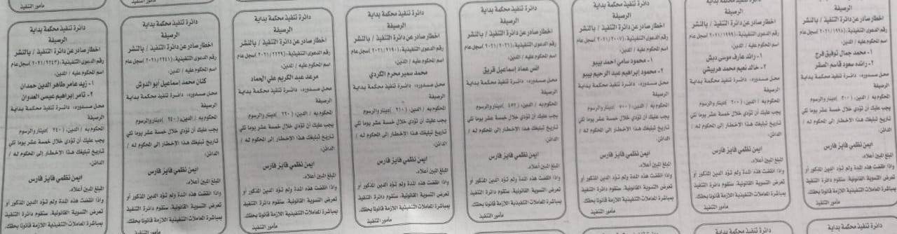 وطلبت المذكرات مراجعة المحاكم المبينة إزاء اسم كل منهم في المواعيد المبينة أدناه. كما صدرت اخطارات عن دوائر التنفيذ في المحاكم..