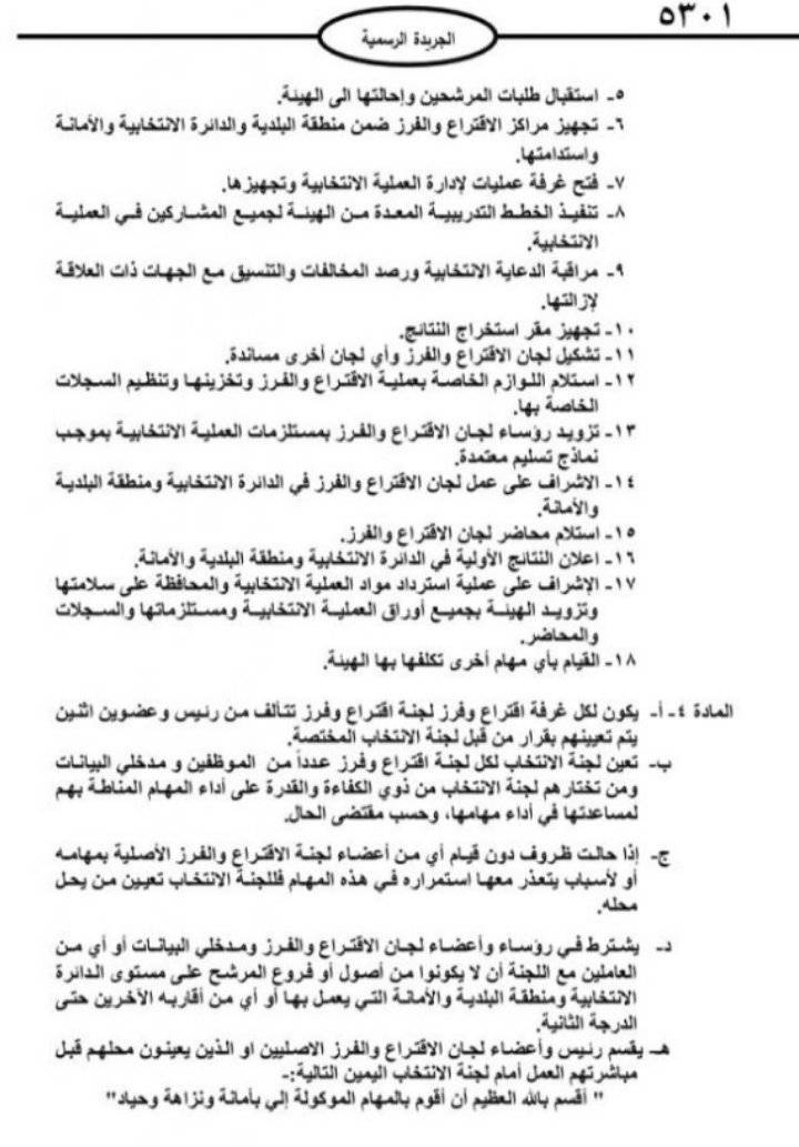 إعلان أسس تشكيل لجان انتخابات مجالس المحافظات والبلديات والأمانة