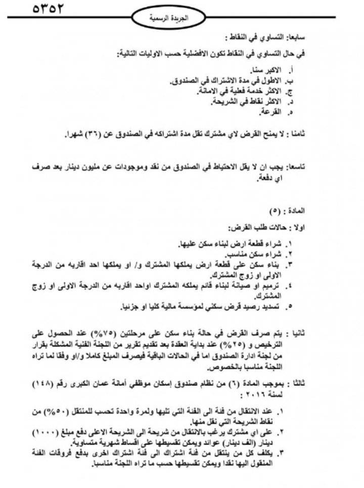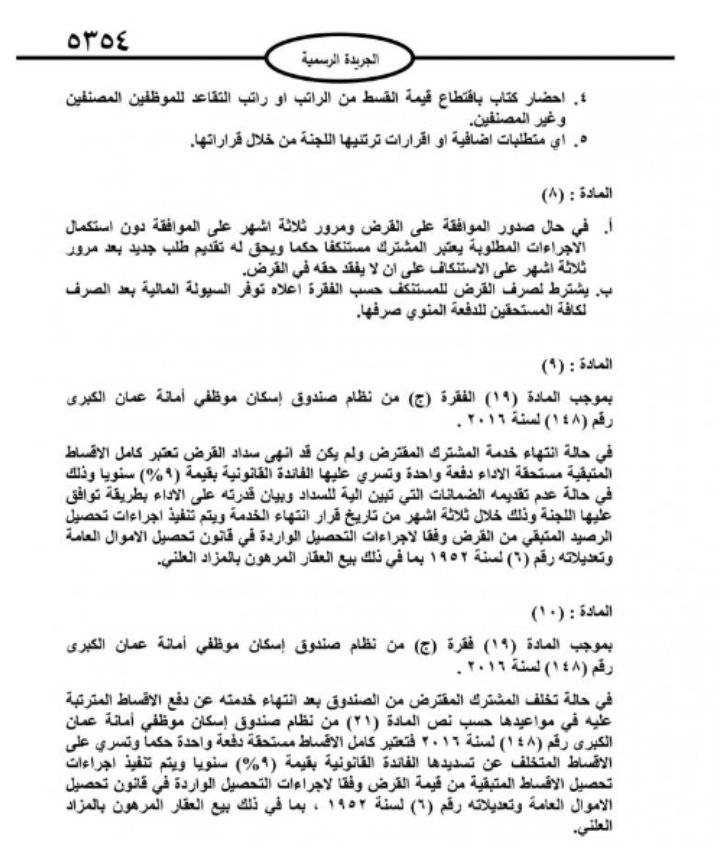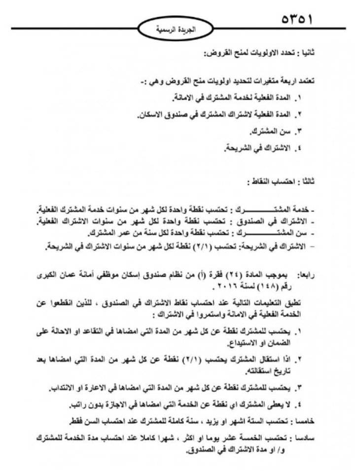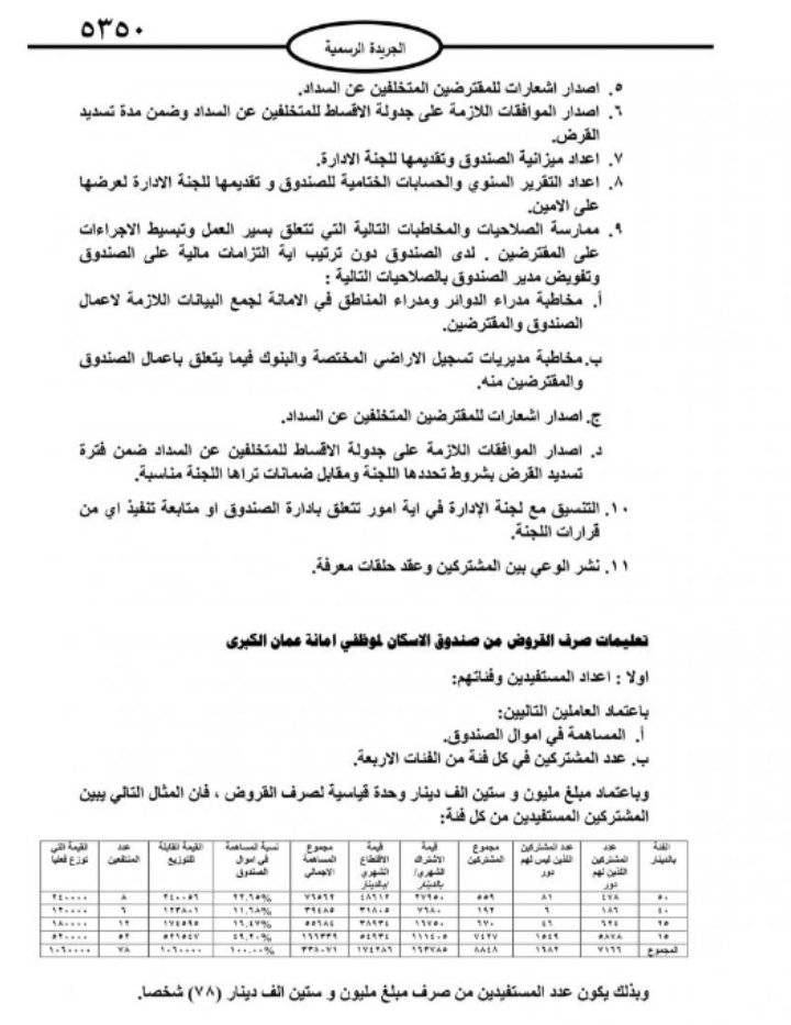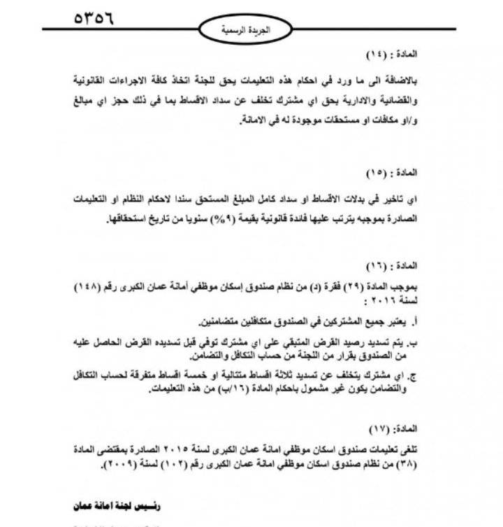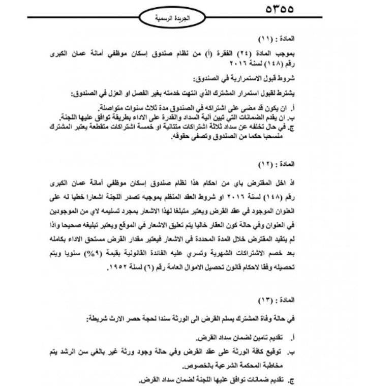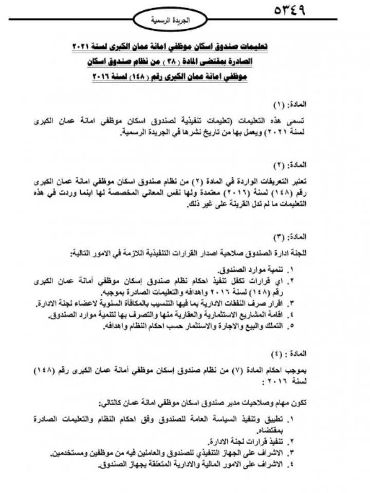 صدر في عدد الجريدة الرسمية الأربعاء، تعليمات صندوق اسكان موظفي امانة عمان الكبرى لسنة 2021.