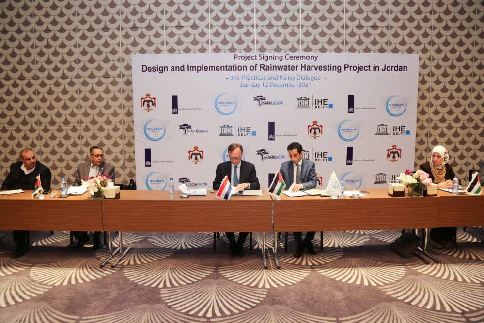 عمان ، الأردن - وقعت سفارة مملكة هولندا اليوم الأحد 12 ديسمبر 2021 اتفاقية شراكة بقيمة 5 ملايين يورو مع الشبكة الإسلامية الدولية لتنمية وإدارة الموارد المائية   (INWRDAM) حيث سيتم تنفيذ المشروع من قبل INWRDAM و IHE Delft و Acacia Water  بالشراكة الوثيقة مع وزارة المياه والري وسلطة وادي الأردن لتصميم وتنفيذ مشروع  حصاد مياه الأمطار لمدة 3 سنوات على مستوى المنازل والحقل.