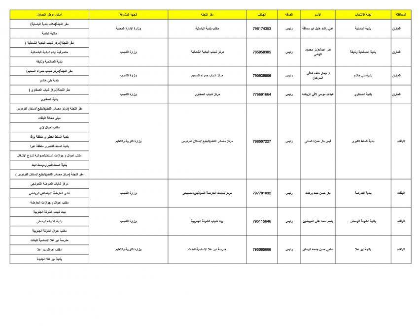 أعلنت الهيئة المستقلة للانتخاب الخميس، أماكن عرض الجداول الاولية للناخبين في انتخابات مجالس المحافظات والمجالس البلدية ومجلس أمانة عمان والمقرر إجراؤها في 22/3/2022، وذلك استنادا لأحكام المادة (36) من قانون الادارة المحلية رقم 22 لسنة 2021، والمادة (6) من قانون أمانة عمان، رقم 18 لسنة 2021.