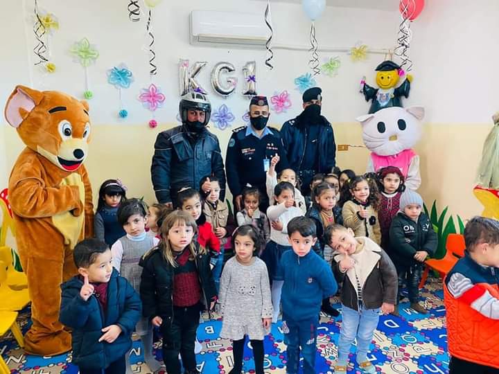 الشرطة المجتمعية تنظم نشاط ترفيهي توعوي لأطفال روضة سنافر الشوبك