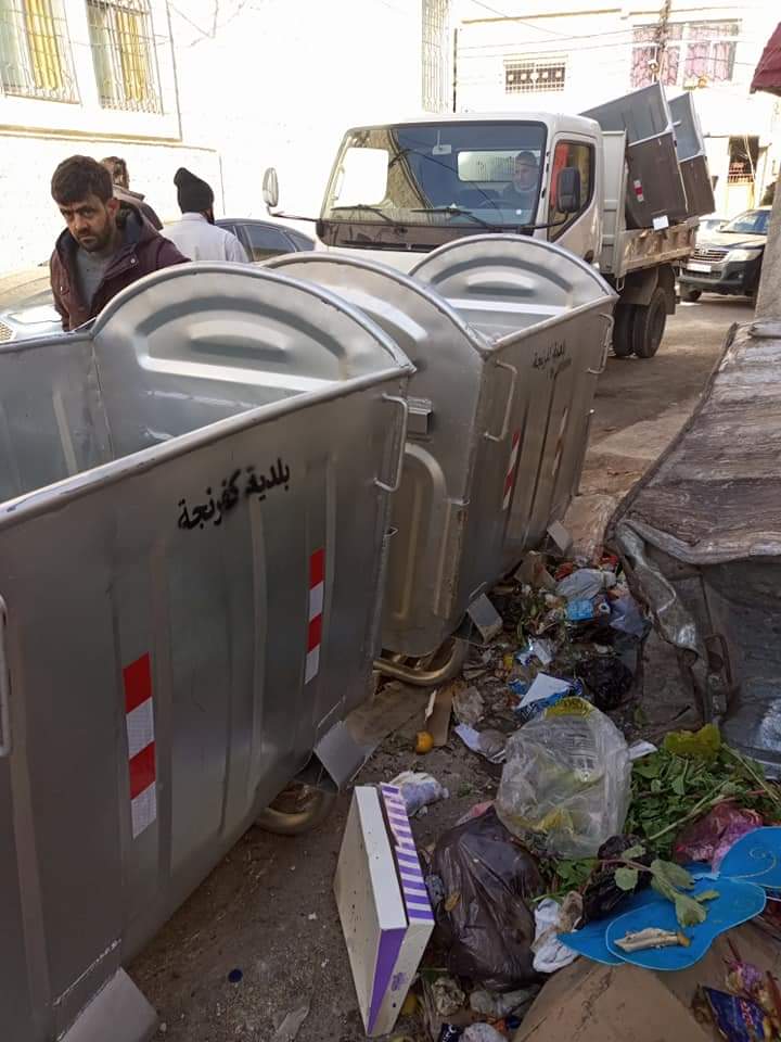 بلدية كفرنجة توزع حاويات معدنية على مناطقها ...صور