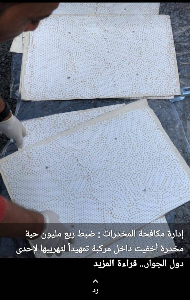 إدارة مكافحة المخدرات : ضبط ربع مليون حبة مخدرة أُخفيت داخل مركبة تمهيداً لتهريبها لإحدى دول الجوار... صور