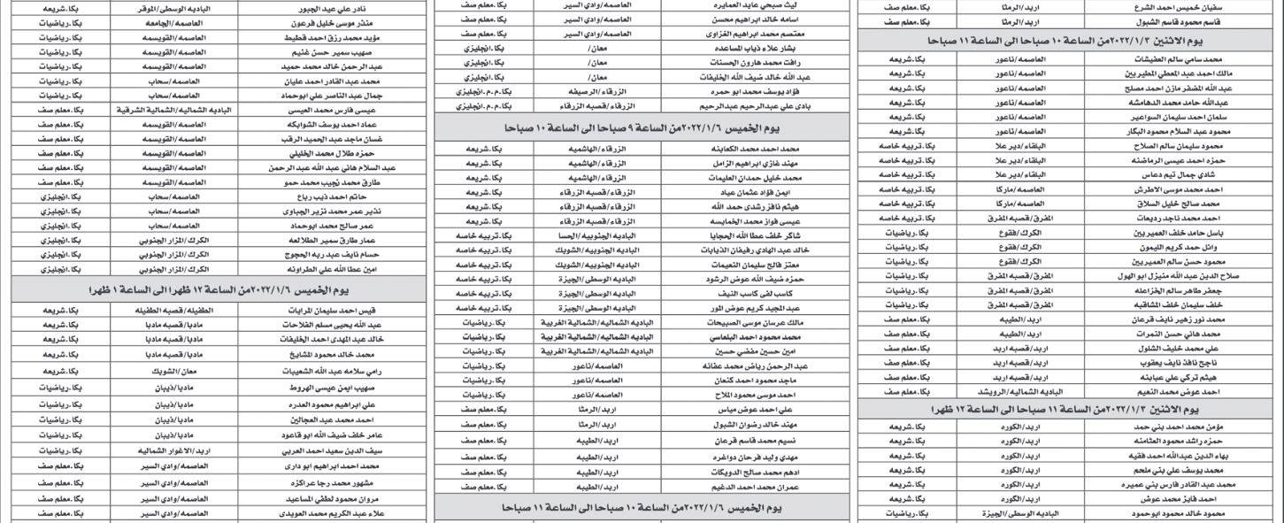 دعت وزارة التربية والتعليم بالتنسيق مع ديوان الخدمة المدنية، المرشحين الذين اجتازوا الامتحان التنافسي لإجراء المقابلات الشخصية.