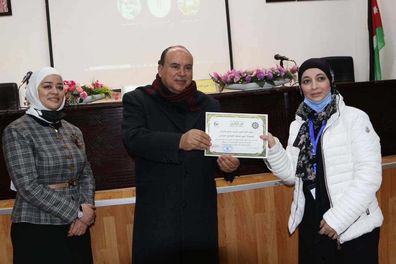 وقد قام سعادة الاستاذ الدكتور محمد الخلايلة رئيس الجامعه بتقديم دروع الجامعه التذكارية للضيوف وتوزيع الشهادات على طلبة الدكتوراة المنظمين للحفل وتكريم الأستاذة الدكتورة عليا العويدي عميدة كلية العلوم التربوية والدكتورة فجر قطيشات رئيسة قسم التربية الخاصة والأستاذة الدكتورة فريال شنيكات مدرسة المادة والمشرفه على الندوة