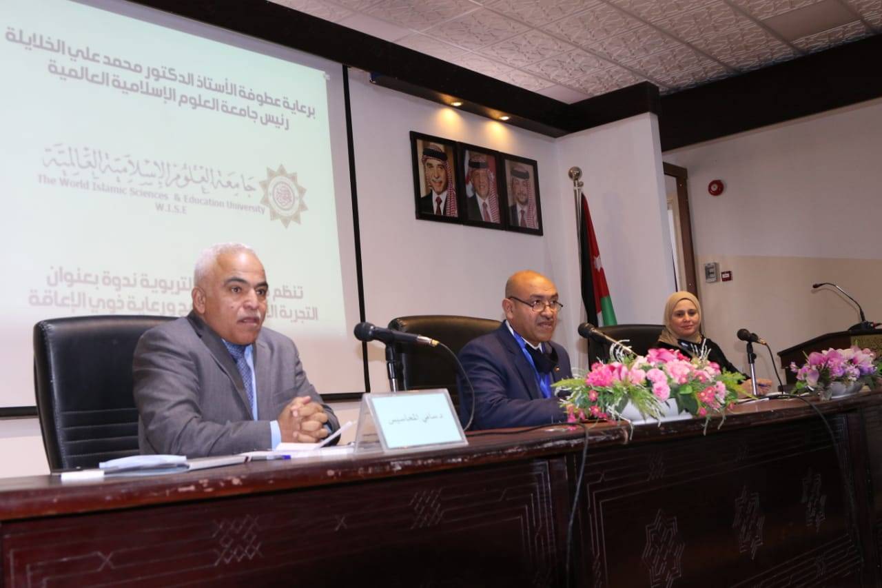 برعاية رئيس جامعة العلوم الإسلامية العالمية الاستاذ الدكتور محمد الخلايلة وبمناسبة يوم الاعاقة العالمي اقميت في رحاب الجامعه الندوة العلمية بعنوان " التجربة الأردنية في دمج ورعاية ذوي الإعاقة"