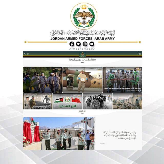 كما أطلقت مديريه التوجيه المعنوي البث التلفزيوني العسكري (درع الوطن) والذي يبث على شاشة التلفزيون الأردني من خلال دورة برامجية تلفزيونية خاصة بالقوات المسلحة الأردنية، حرصاً منها على تطوير أدوات ومحتوى الإعلام العسكري ضمن متطلبات البيئة المعلوماتية والإعلامية العصرية الحديثة، لزيادة الاستمرارية والتواصل بين القوات المسلحة والمجتمع المحلي، من خلال اطلاعهم على أهم النشاطات والفعاليات التي تقوم بها القوات المسلحة، إضافة إلى إطلاق الموقع الإلكتروني الجديد للقيادة العامة للقوات المسلحة الأردنية، والذي يتيح للمتصفح الاطلاع على آخر الأخبار والإعلانات الصادرة عن القوات المسلحة، والحصول على المعلومات بسلاسة وسهولة عن أحدث الأنشطة والمستجدات على ساحة القوات المسلحة باللغتين العربية والإنجليزية. المعارض العسكريةوتعقد القيادة العامة للقوات المسلحة عدداً من المعارض العسكرية المشتركة مع مؤسسات الدولة المختلفة في مجال الذكاء الاصطناعي ومؤتمرات معالجة التحديات والصناعات الدفاعية منها معرض الذكاء الاصطناعي لتكنلوجيا الدفاع والأمن السيبراني الأول الذي كان برعاية سمو الأمير الحسين بن عبدالله الثاني ولي العهد، الذي هدف إلى جمع خبراء الذكاء الاصطناعي الرائدين في تكنولوجيا الدفاع والأمن السيبراني مع صناع القرار لبحث أهم التطورات في هذا المجال.