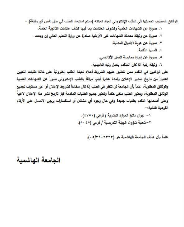 “الهاشمية” تعلن حاجتها لتعيين أعضاء هيئة تدريسية