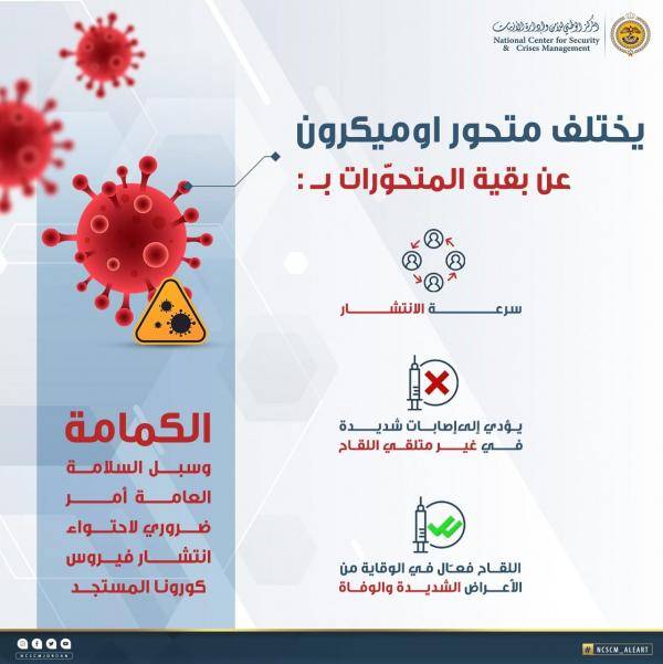 نيروز الإخبارية : حذر المركز الوطني للأمن وإدارة الأزمات الأردنيين من متحور أوميكرون، مشيرا إلى أنه يختلف عن بقية متحورات فيروس كورونا بـ 3 أمور.