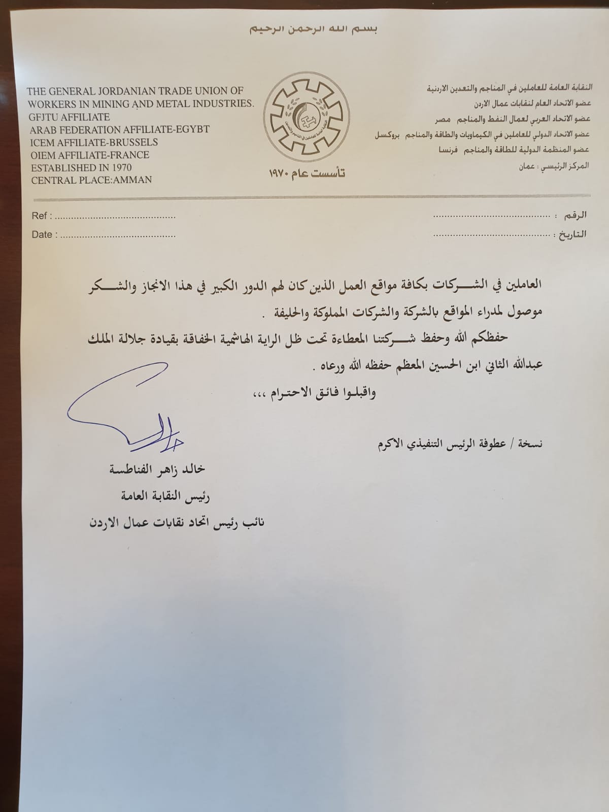 نقابة العاملين في المناجم والتعدين تؤكد رفضها تشويه الحقائق والاساءة لسمعة الشركة
