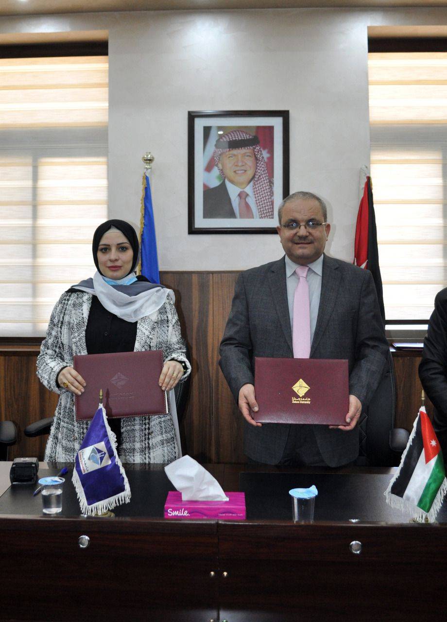 وحضر توقيع الاتفاقية مديرة العلاقات العامة والإعلام في الجامعة نسرين أبو عاشور، ومسؤولة مركز الاستشارات والتدريب رشا عثامنة.