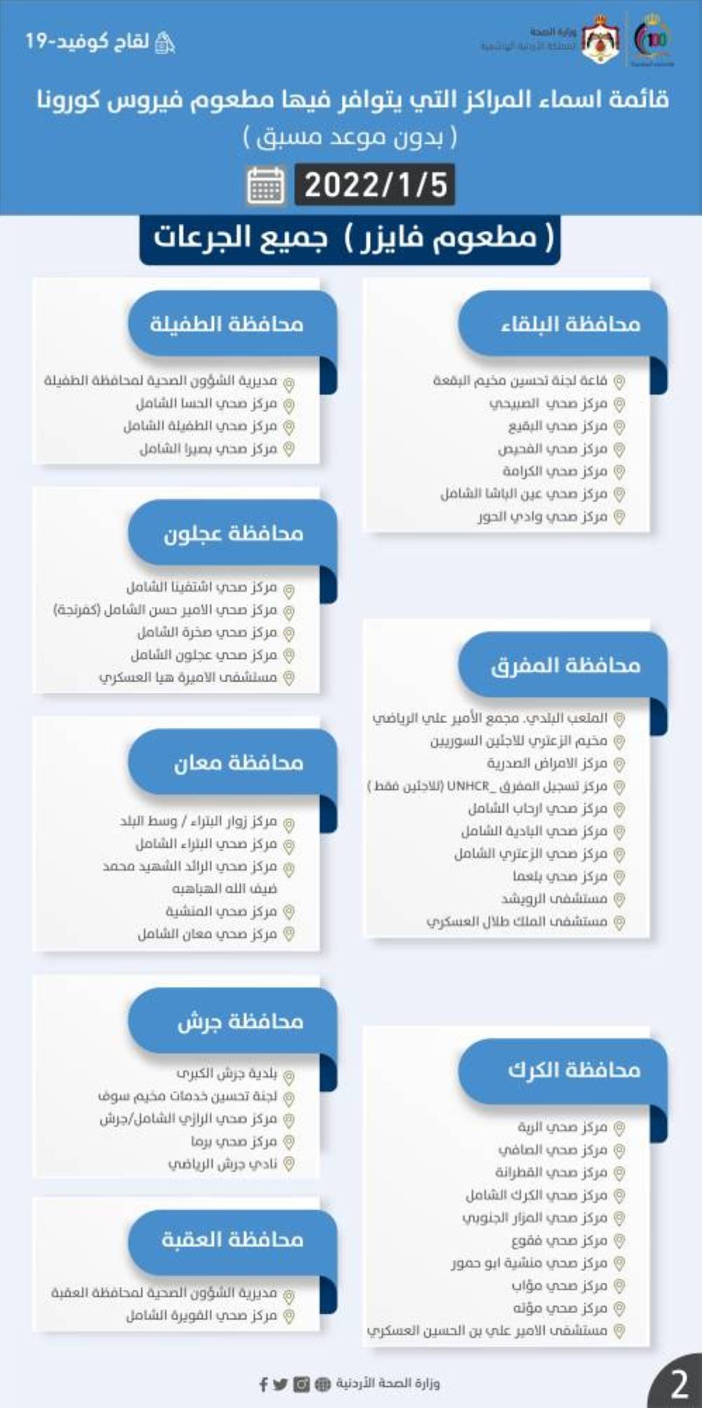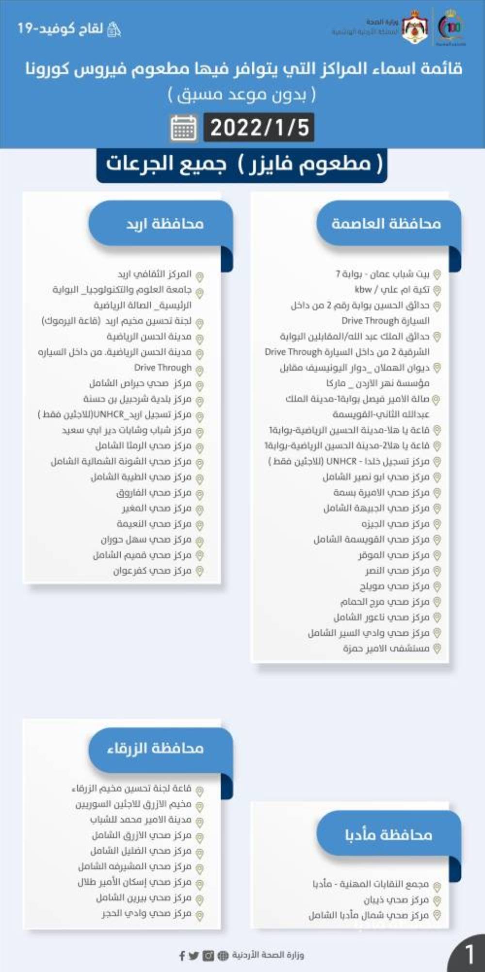 مراكز التطعيم اليوم الاربعاء 2022/1/5