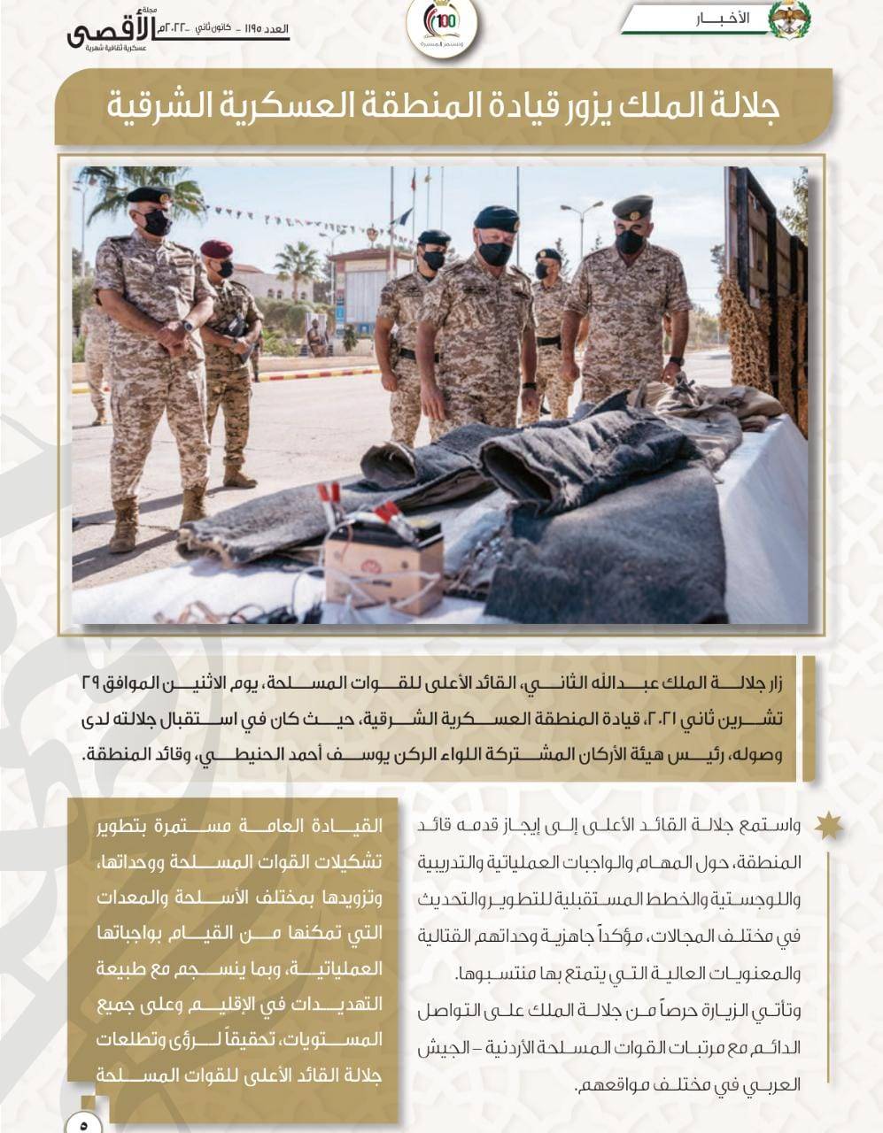 وتضمن العدد جملة من الأخبار والنشاطات منها تفقد جلالة  الملك عبد الله الثاني ابن الحسين  لمشروع زراعي كبير في الغمر تنفذه القوات المسلحة .
